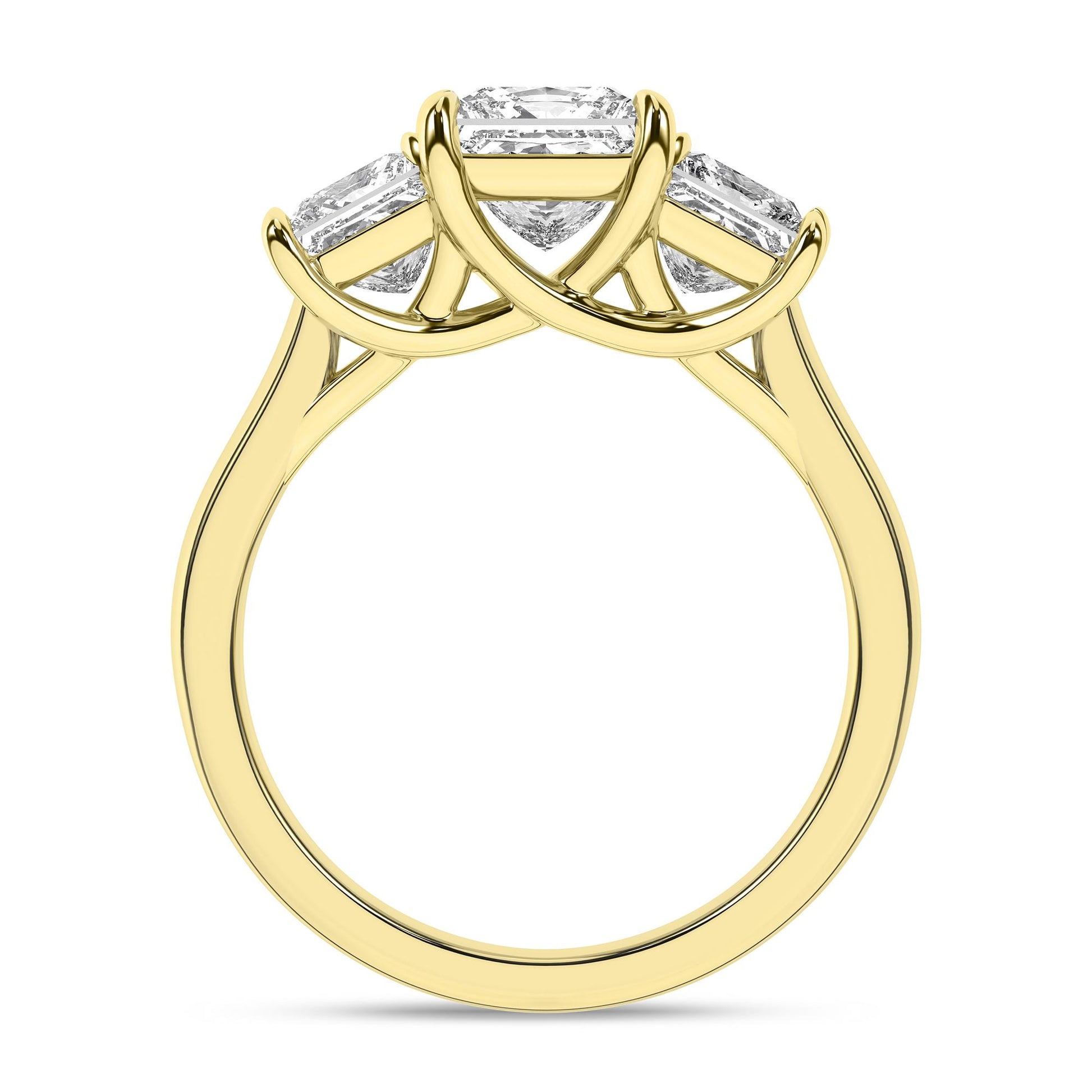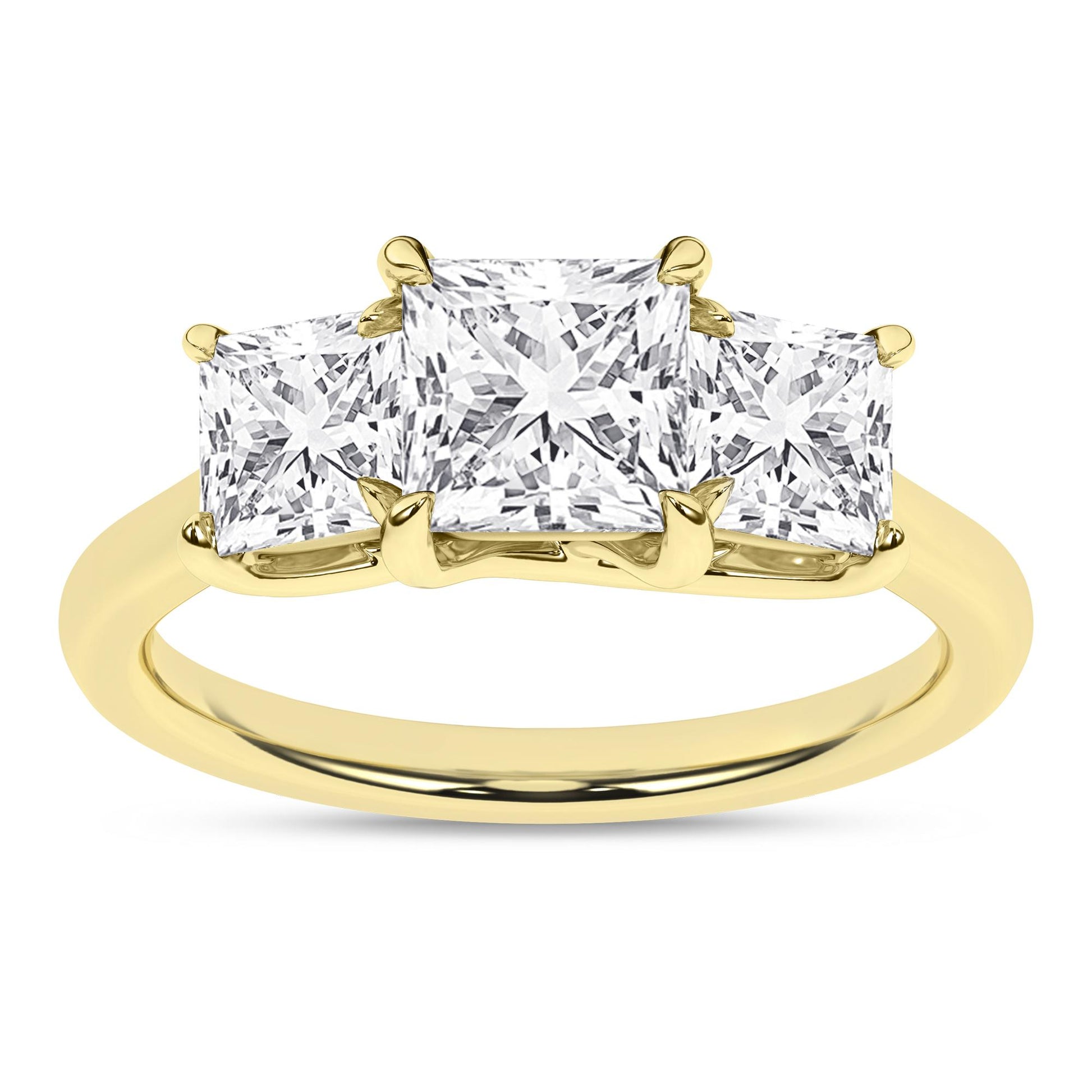 14K Yellow Gold Lab Grown Diamond Princess Three Stone Engagement Ring