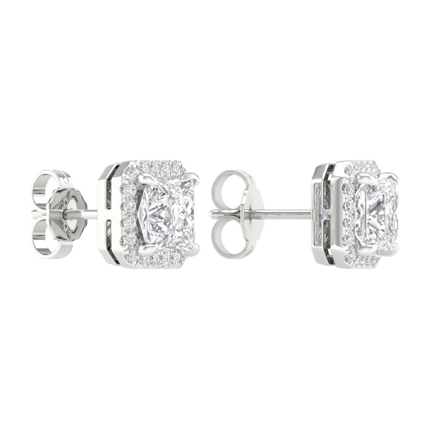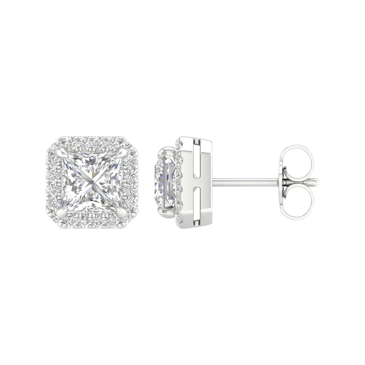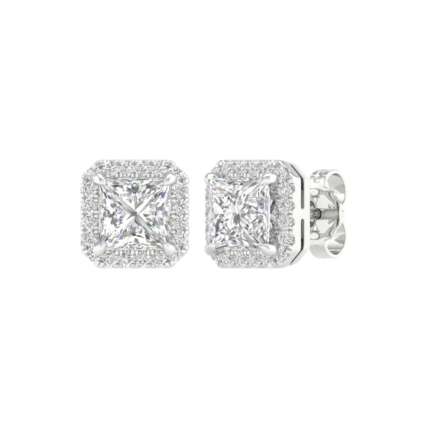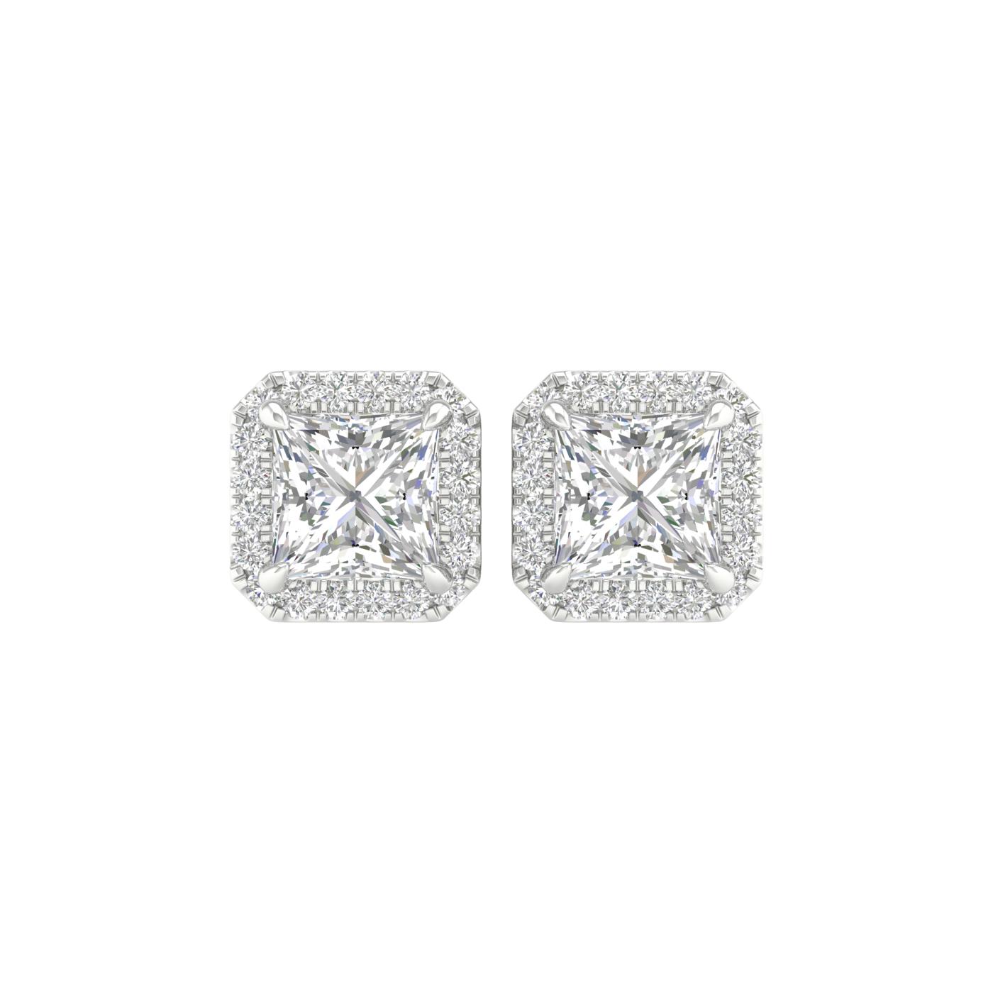 14K White Gold Lab Grown 2.35CTW Princess Diamond Halo Studs
