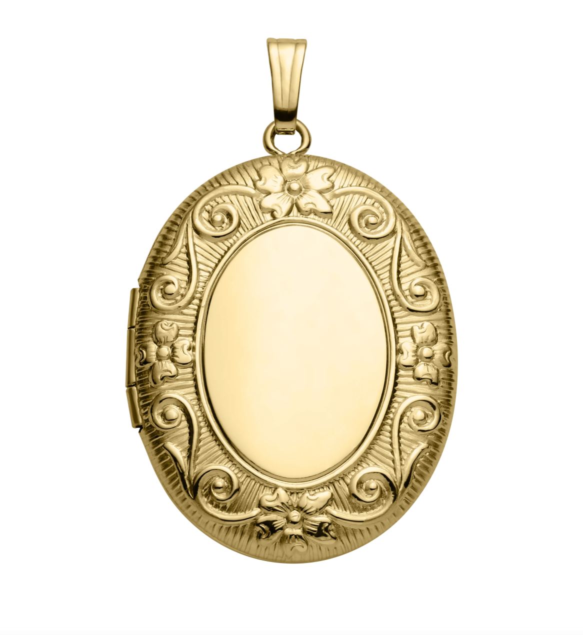 14K Yellow Gold Medium Engraved Floral Oval Locket