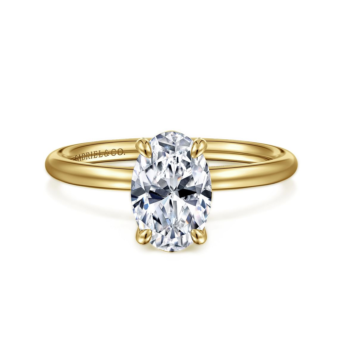 14K Yellow Gold Oval Solitaire Diamond Engagement Ring