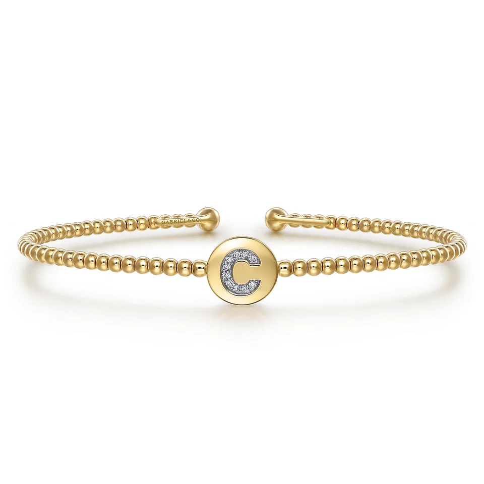 14K Yellow Gold Round C Initial Diamond Bujukan Cuff Bracelet