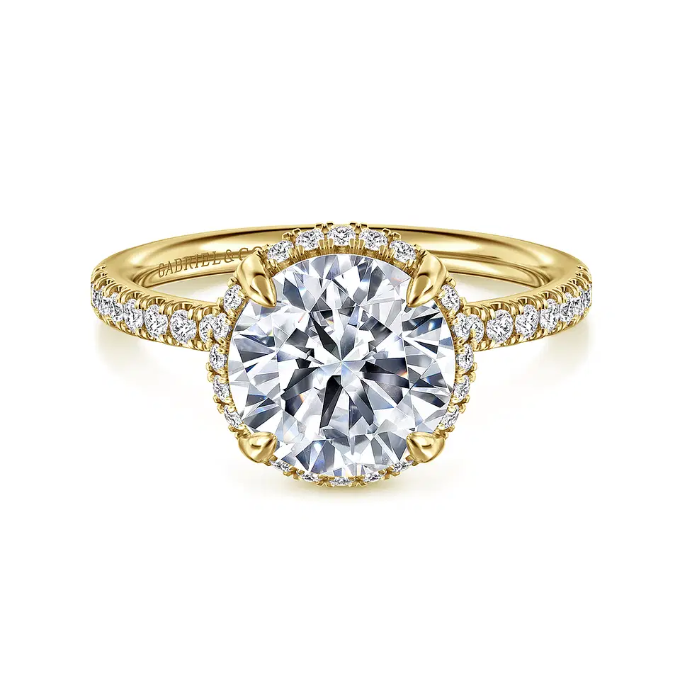 14K Yellow Gold Round Hidden Halo Diamond Engagement Ring
