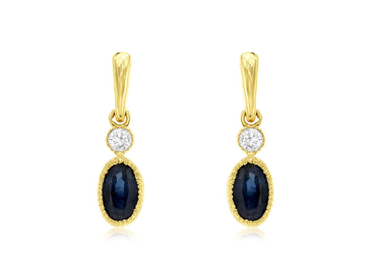 Add a touch of elegance to your look with our 14K Yellow Gold Diamond and Sapphire Dangle Earrings. These stunning earrings feature a bezel-set diamond at the top, followed by a bezel-set sapphire gemstone below it. The combination of the sparkling diamond and the deep blue creates a striking and sophisticated look. Crafted in luxurious 14K yellow gold, these earrings are the perfect accessory for any occasion. Whether you're dressing up for a special event or adding a touch of glamour to your everyday look, these earrings are sure to make a statement.
