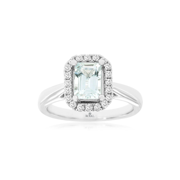 Discover timeless elegance with this exquisite 14K white gold ring, featuring a stunning aquamarine gemstone at its heart, complemented by sparkling diamonds. The soft, calming blue hue of the aquamarine is beautifully enhanced by the brilliant diamonds, which encircle the center stone and line the band, adding a touch of radiance and sophistication. Crafted from high-quality 14K white gold, this ring offers both durability and luxury, making it a perfect choice for engagement, special occasions, or as an elegant addition to your jewelry collection. A true symbol of grace, style, and timeless beauty.