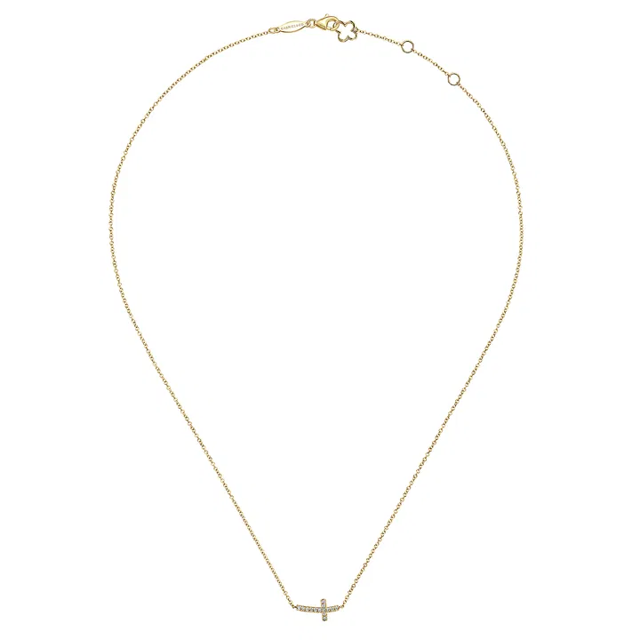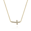 14K Yellow Gold Sideways Curved Diamond Cross Necklace
