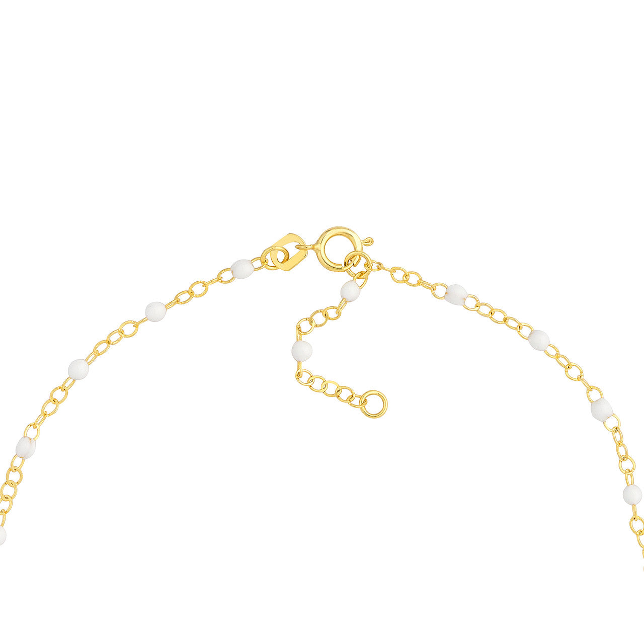 14K Yellow Gold White Enamel Beads & Piatto Chain Bracelet