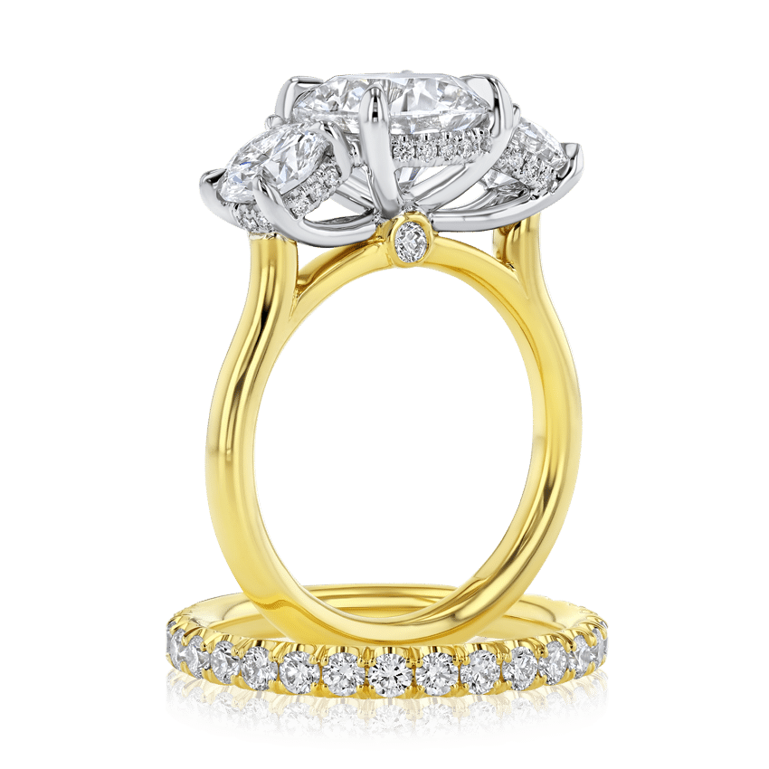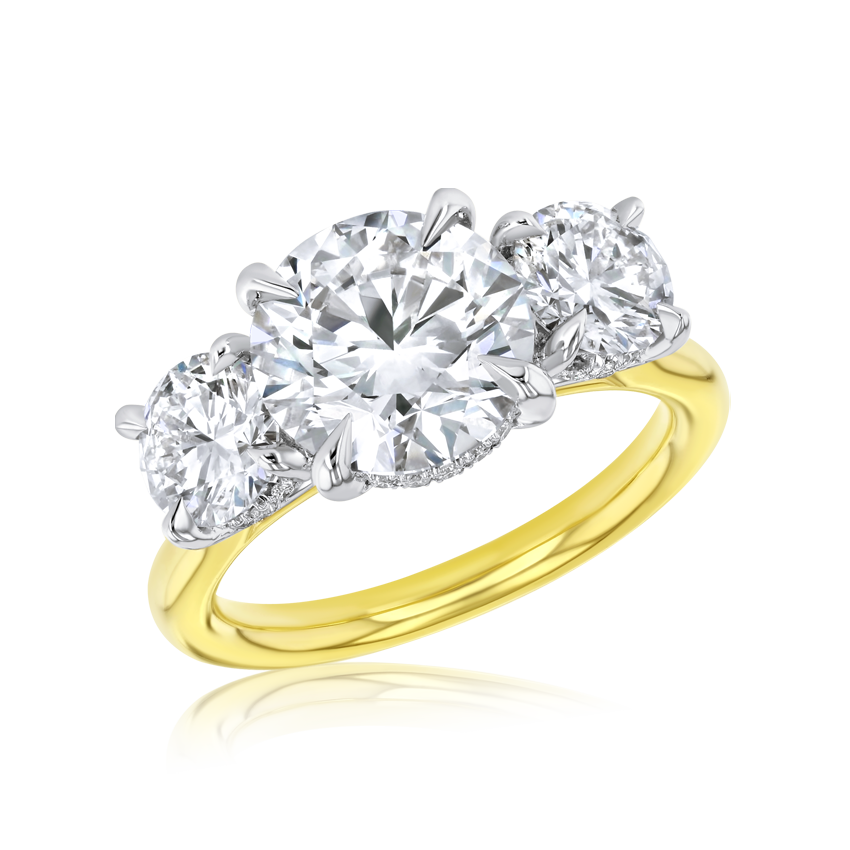 14K Two Tone Lab Grown 7.24CTW Round Three Stone Engagement Ring