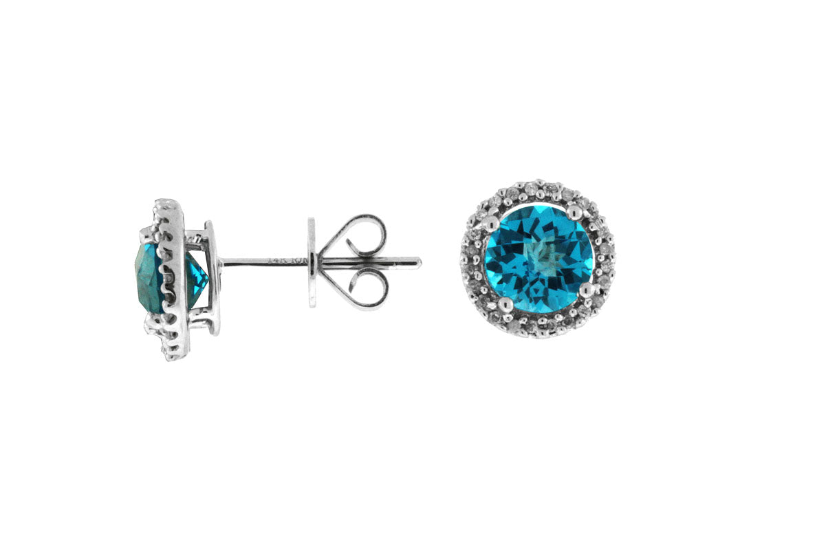 14K White Gold Blue Topaz and Diamond Stud Earrings