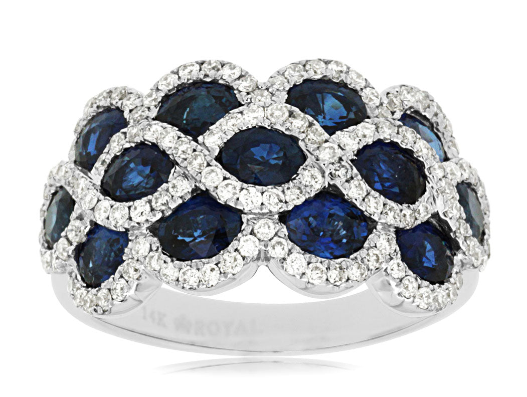 14K White Gold Sapphire and Diamond Braided Wide Band