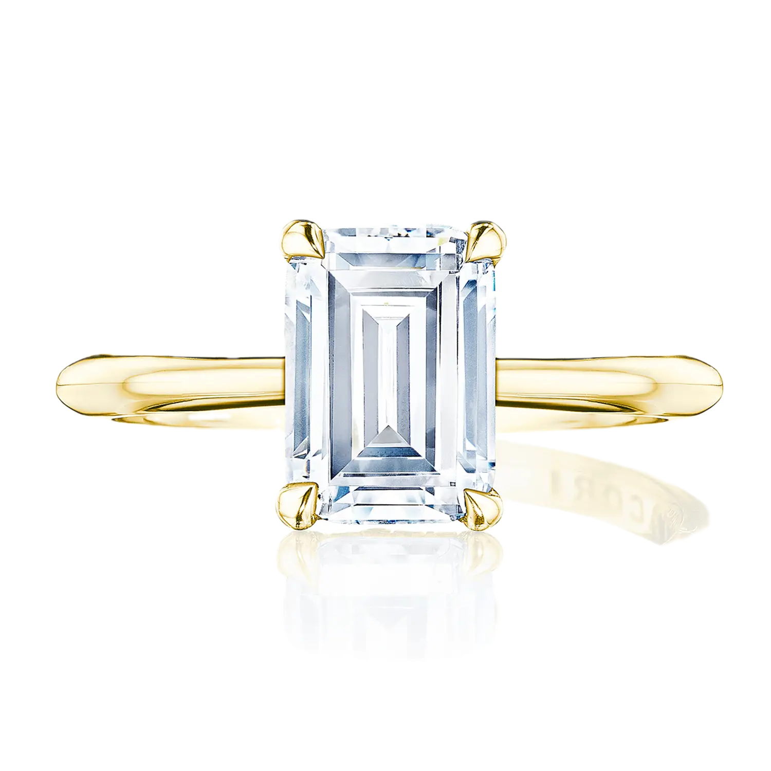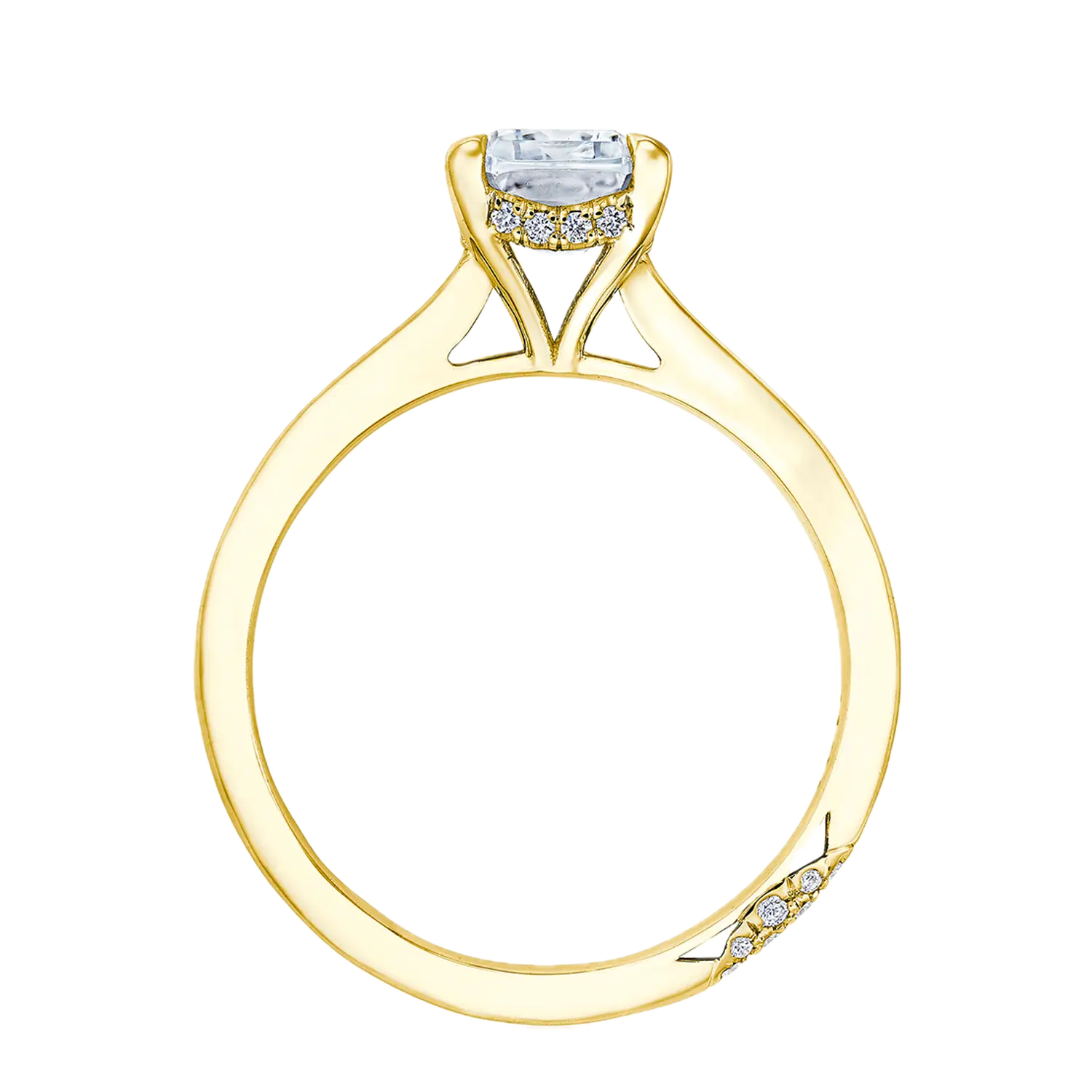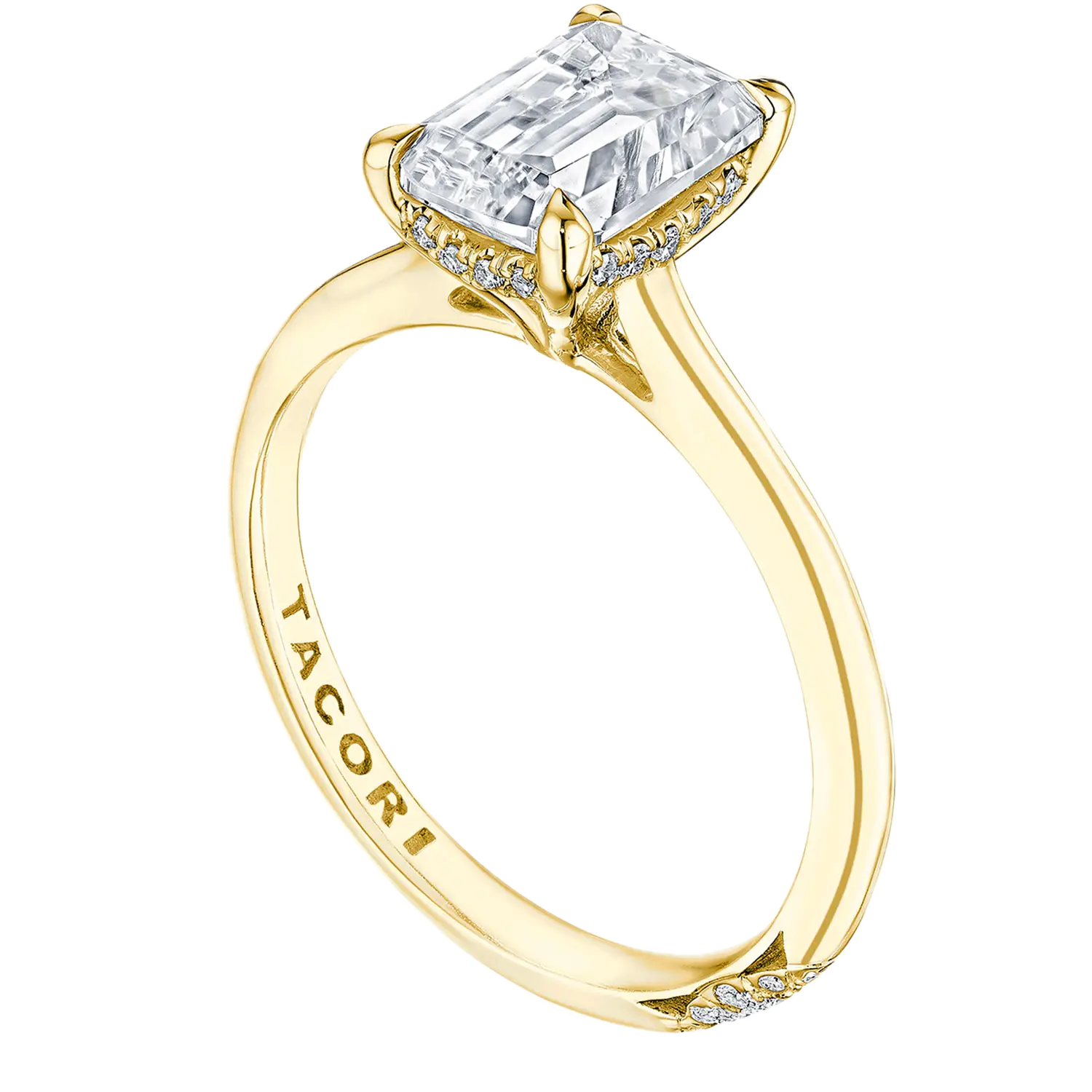 18K Yellow Gold Emerald Solitaire Engagement Ring with Hidden Diamonds
