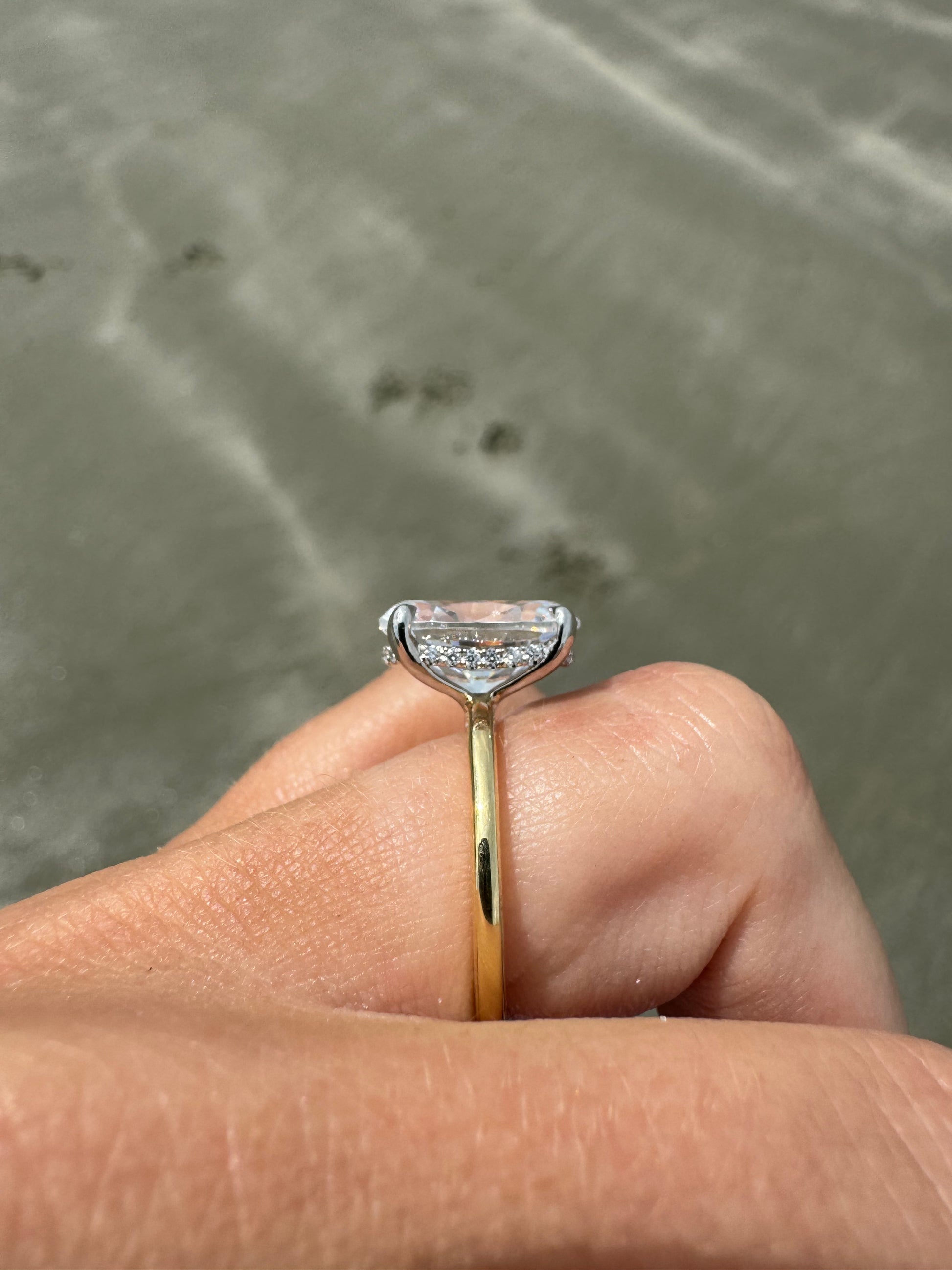 Capture her heart with the timeless elegance of the 18K Yellow Gold Simply Tacori Oval Diamond Engagement Ring. This exquisite ring features a classic oval-shaped setting crafted from luxurious 18K yellow and white gold, designed to highlight the center diamond of your choice (not included). The ring is further enhanced by a hidden halo of diamonds, adding a touch of sparkle and sophistication. With its delicate details and exquisite craftsmanship, this ring is a stunning symbol of your love and commitment.