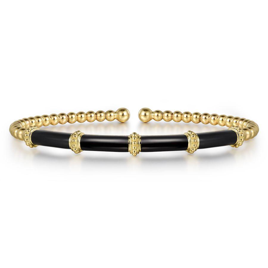 14K Yellow Gold Bujukan Beads Split Bangle with Black Enamel