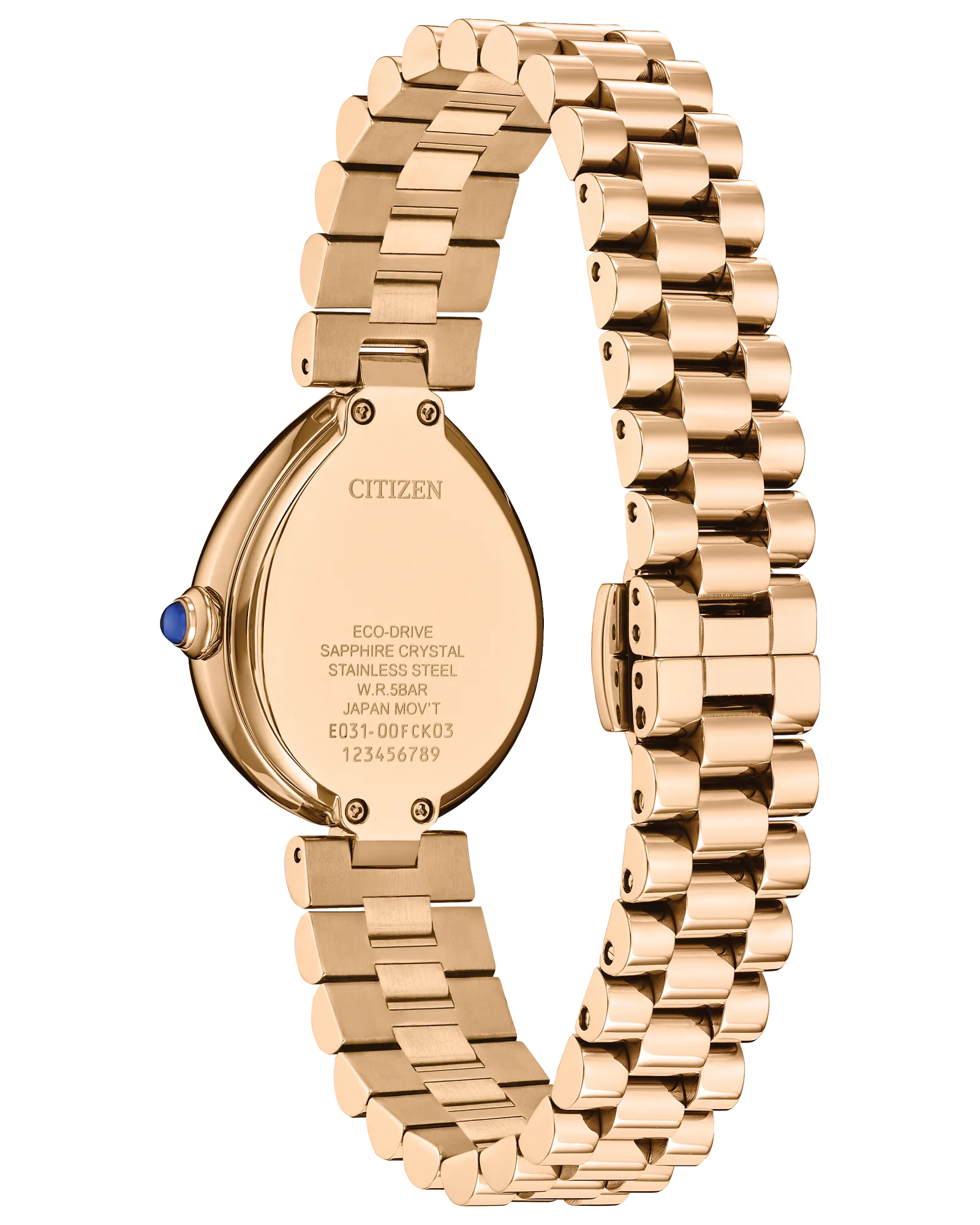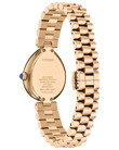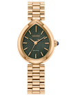 Flirty and feminine, the new Citizen L Rainell is a watch as creative and elegant as those who wear it. With subtle dimensions of 26mm by 31mm, the signature shape of the timepiece speaks for itself in an elevated rose gold-tone stainless steel. An integrated bracelet and synthetic sapphire-set crown punctuate the look. A lovely green dial follows the shape of the case, with a brushed background playing host to refined details in applied indices and matching hands. Sustainably powered by any light with our proprietary Eco-Drive technology that never needs a battery. Water resistant up to 50 meters. Caliber E031.