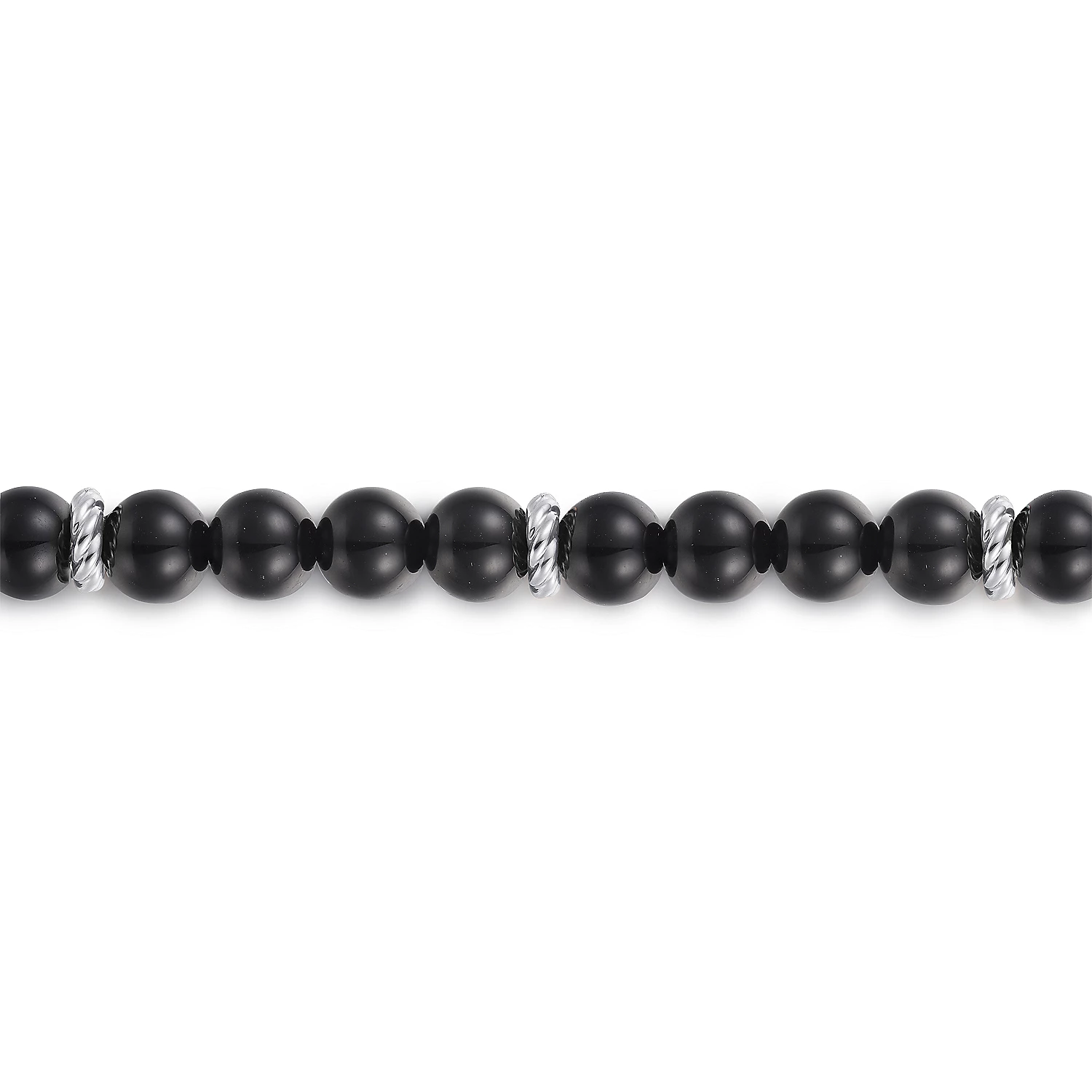 925 Sterling Silver and 6mm Black Onyx Beaded Bracelet