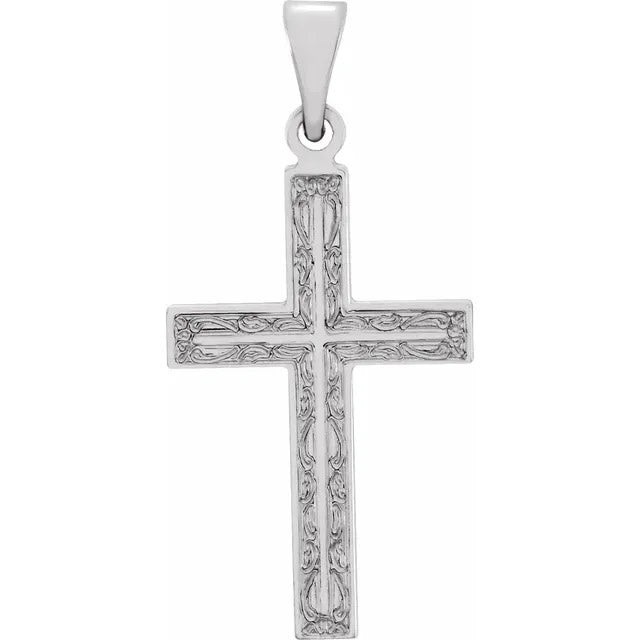 Exhibit your faith and fashion simultaneously with this 14k white gold cross pendant (28X18mm). A beautiful upgrade to an enduring jewelry style.