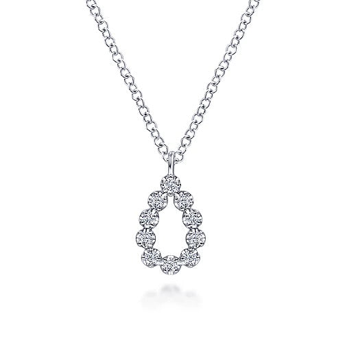 14K White Gold Diamond Teardrop Pendant Necklace (.09ctw) (17.50 in)