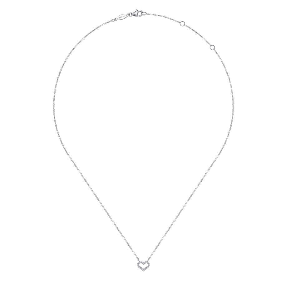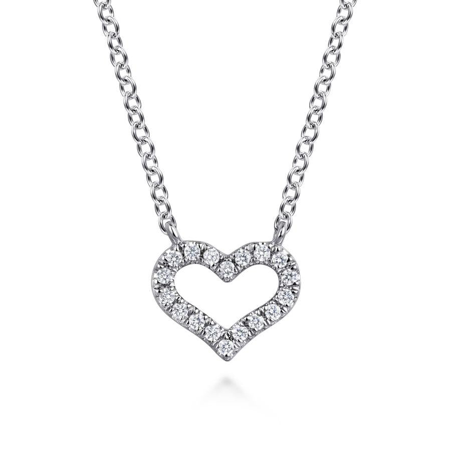 14K White Gold Diamond Heart Pendant Necklace