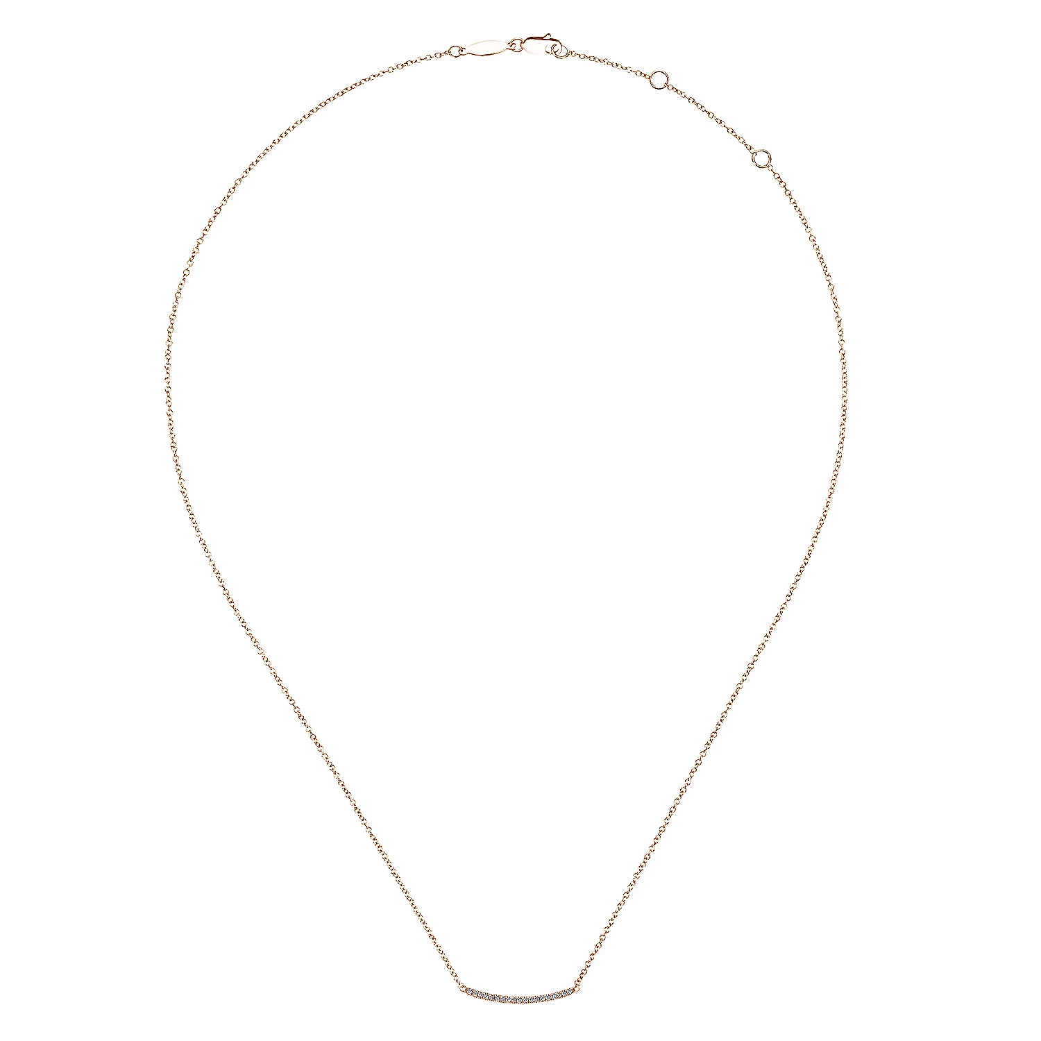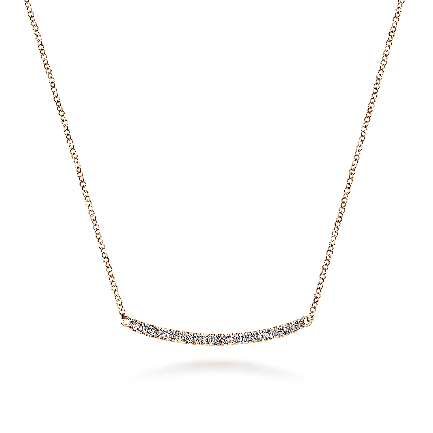 18 inch 14K Rose Gold Diamond Pave Curved Bar Necklace