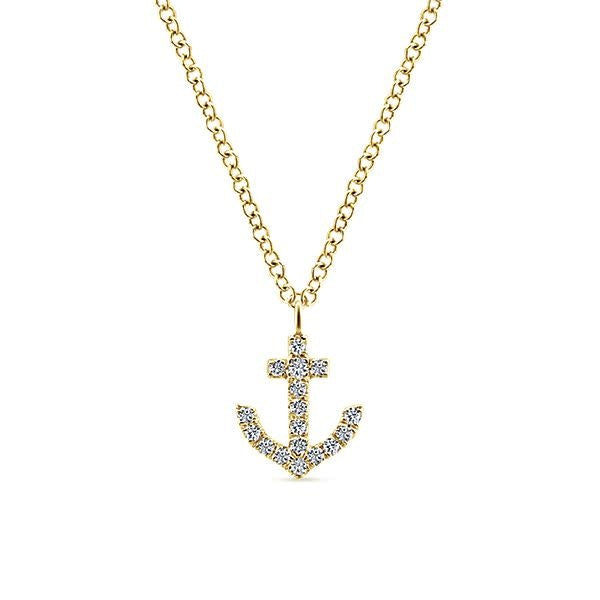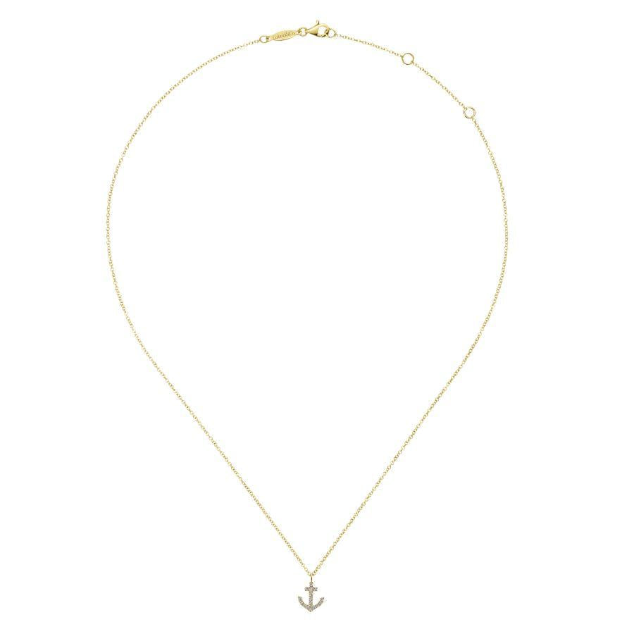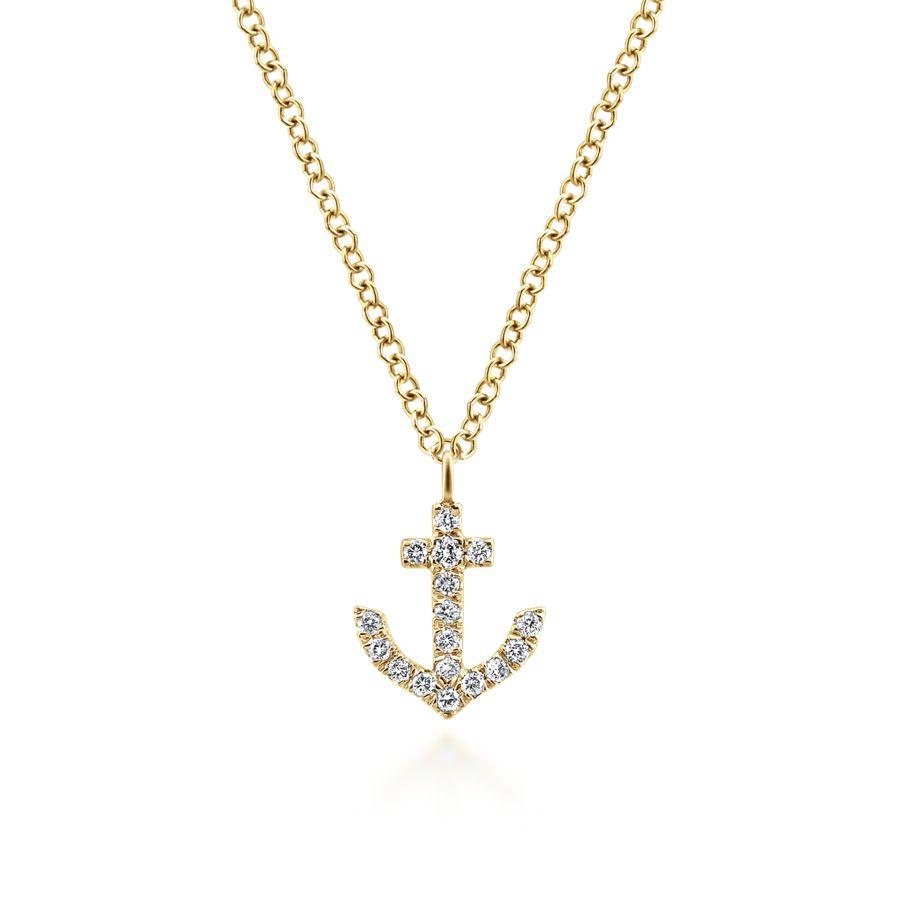 Nautical is new again with this unique anchor pendant necklace crafted from 14kt. yellow gold and diamonds. (.09ctw)