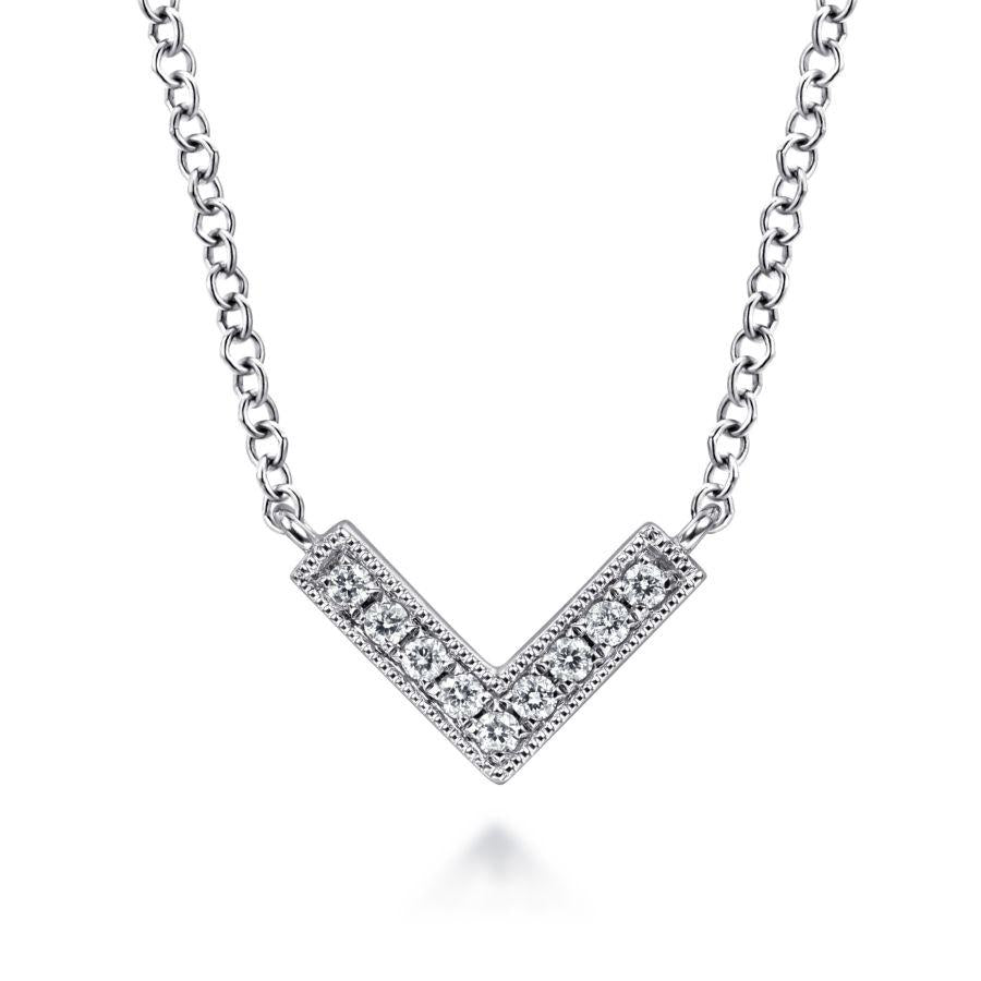 White Gold Diamond Chevron Necklace