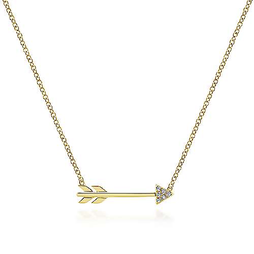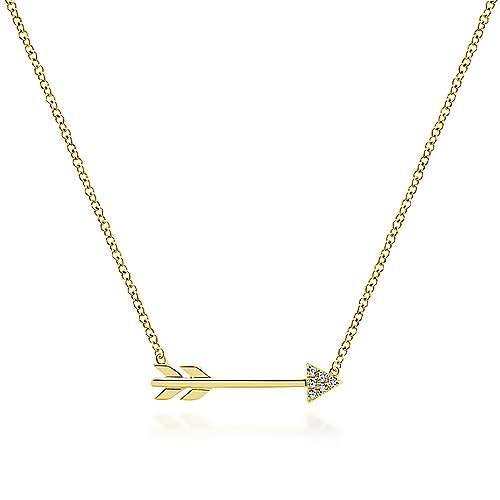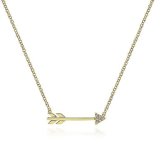 This charming fashion necklace boasts a dainty 14k yellow gold arrow with a subtle pave diamond-accented tip. Make a graphic statement with this fresh and fun 0.02ct diamond necklace.