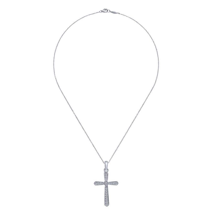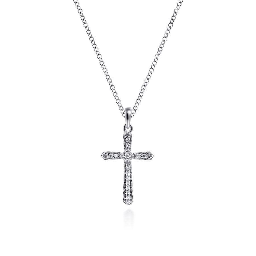 14kt. White Gold pave diamond cross with milgrain edging. (.07ctw)