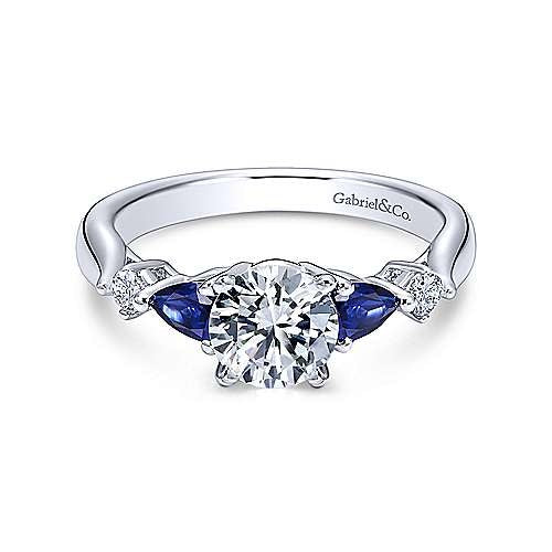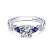 The elegance of a vintage ring with a contemporary flair. This straight styled engagement ring is adorned with diamond and sapphire side stones to highlight your flawless center stone.*Setting only, center stone not included