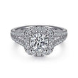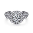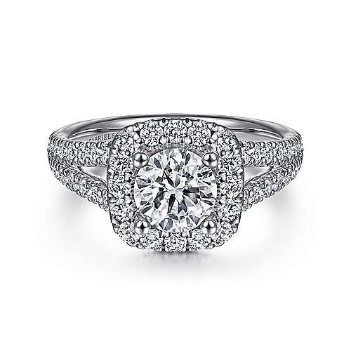 14K White Gold Cushion Halo Round Diamond Engagement Ring