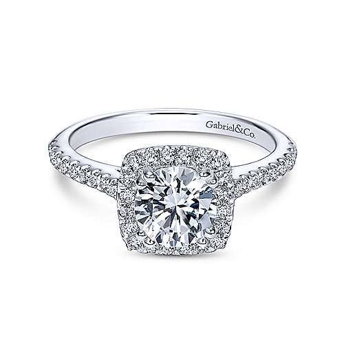 14K White Gold Cushion Halo Round Diamond Engagement Ring