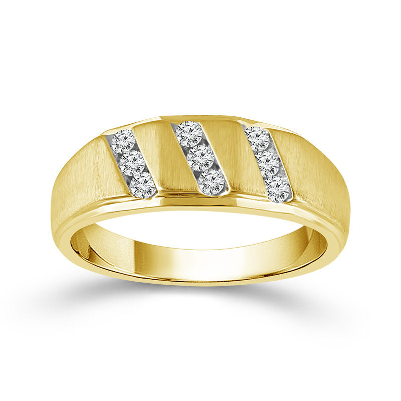 10K Yellow Gold Slanted Diamond Row Band