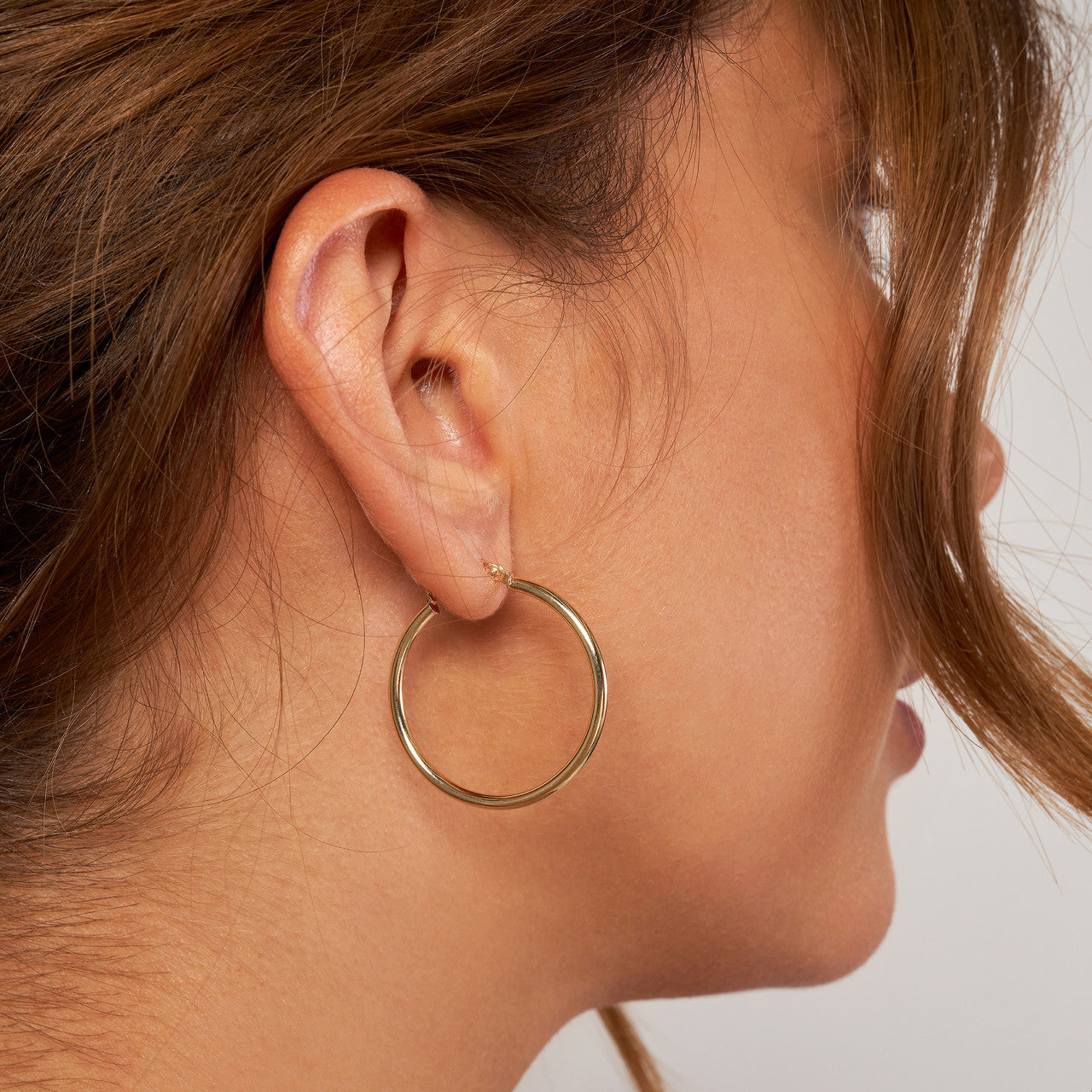 Thin polished hoops are an essential to any wardrobe. Heighten any look with these 10K yellow gold hoop earrings with a hinge closure.