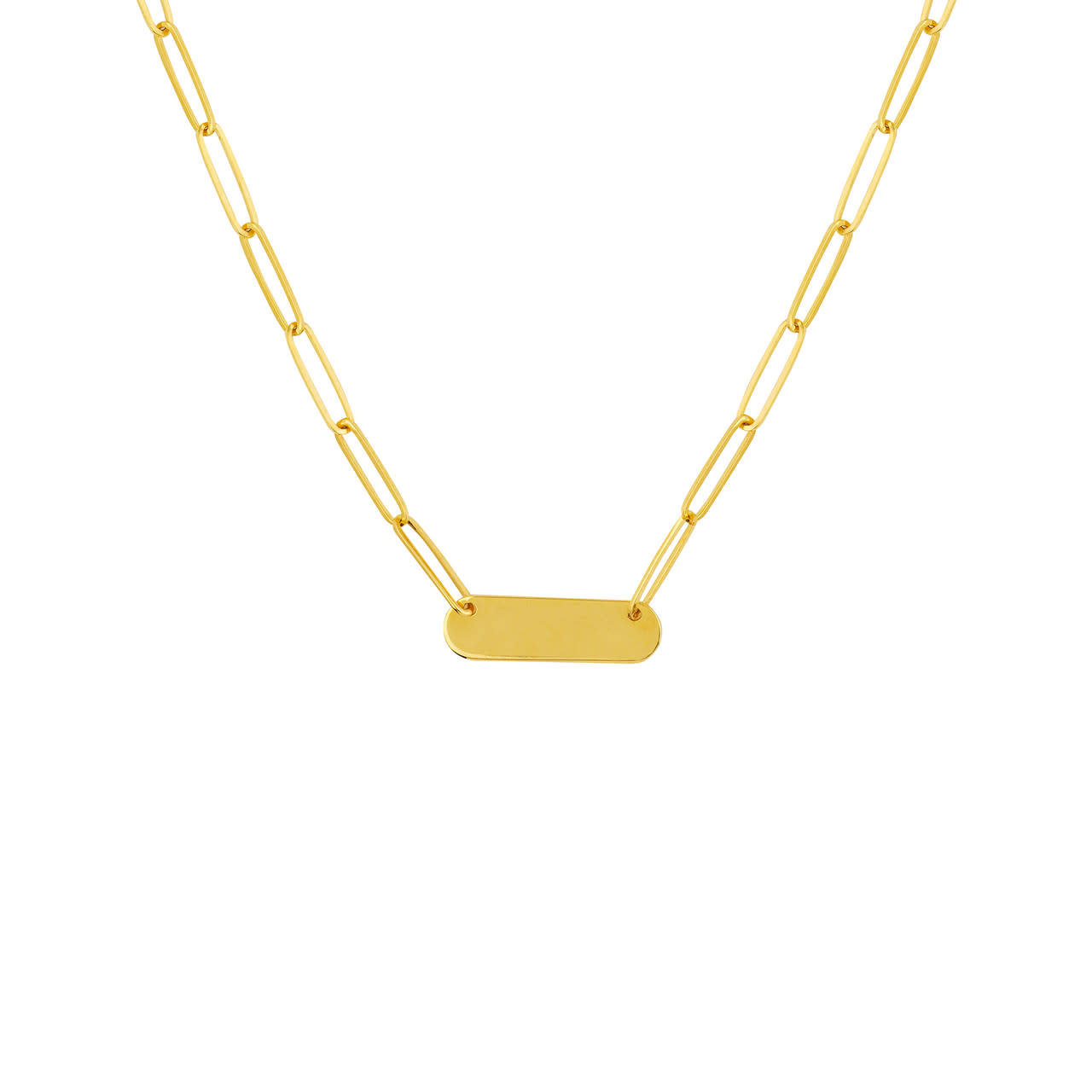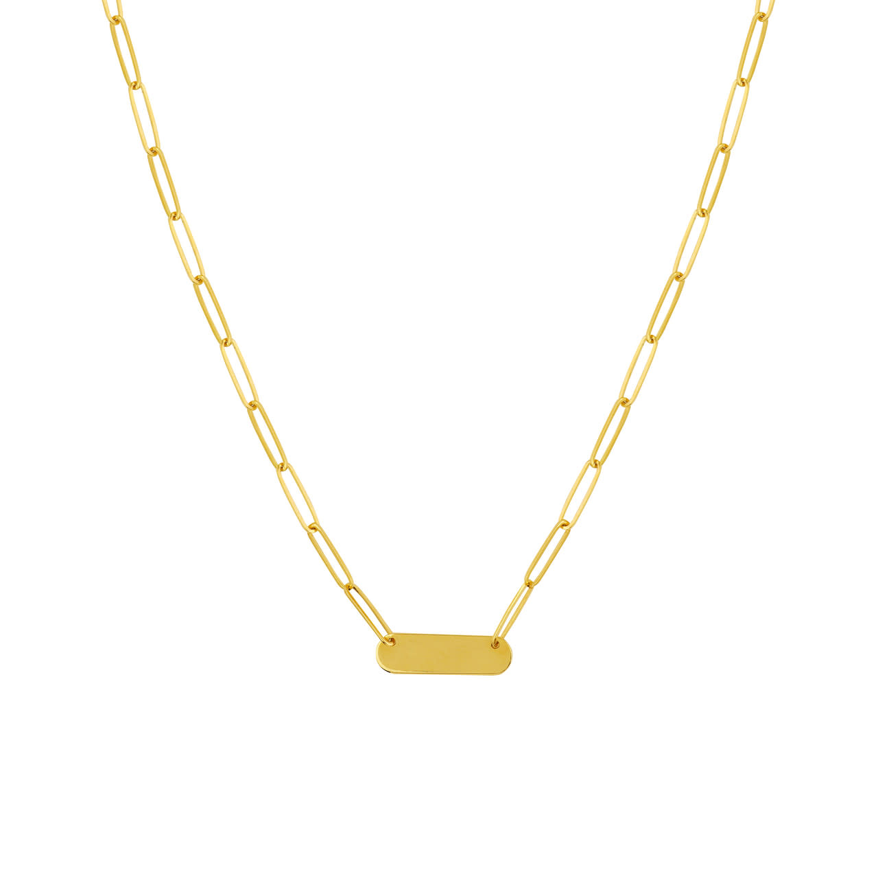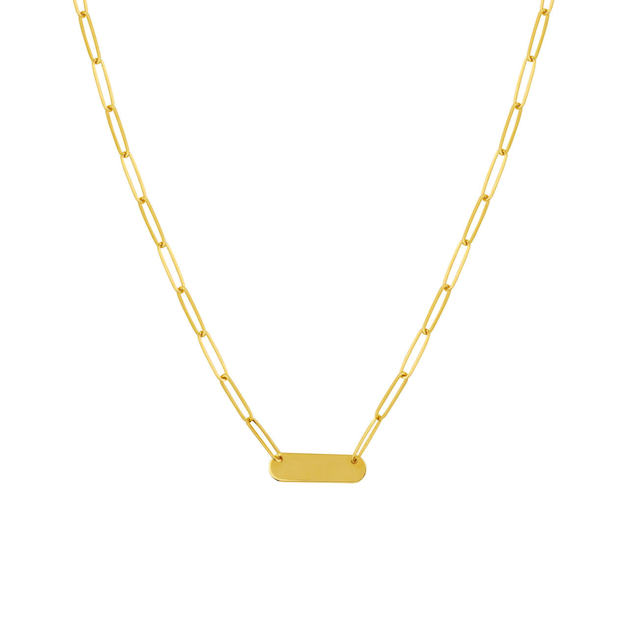 A classic bar necklace is something that belongs in everyone's jewelry collection. It looks great worn alone or layered with our necklaces. This 14k petite bar necklace is designed with a trendy paper clip chain and is 18" in length.