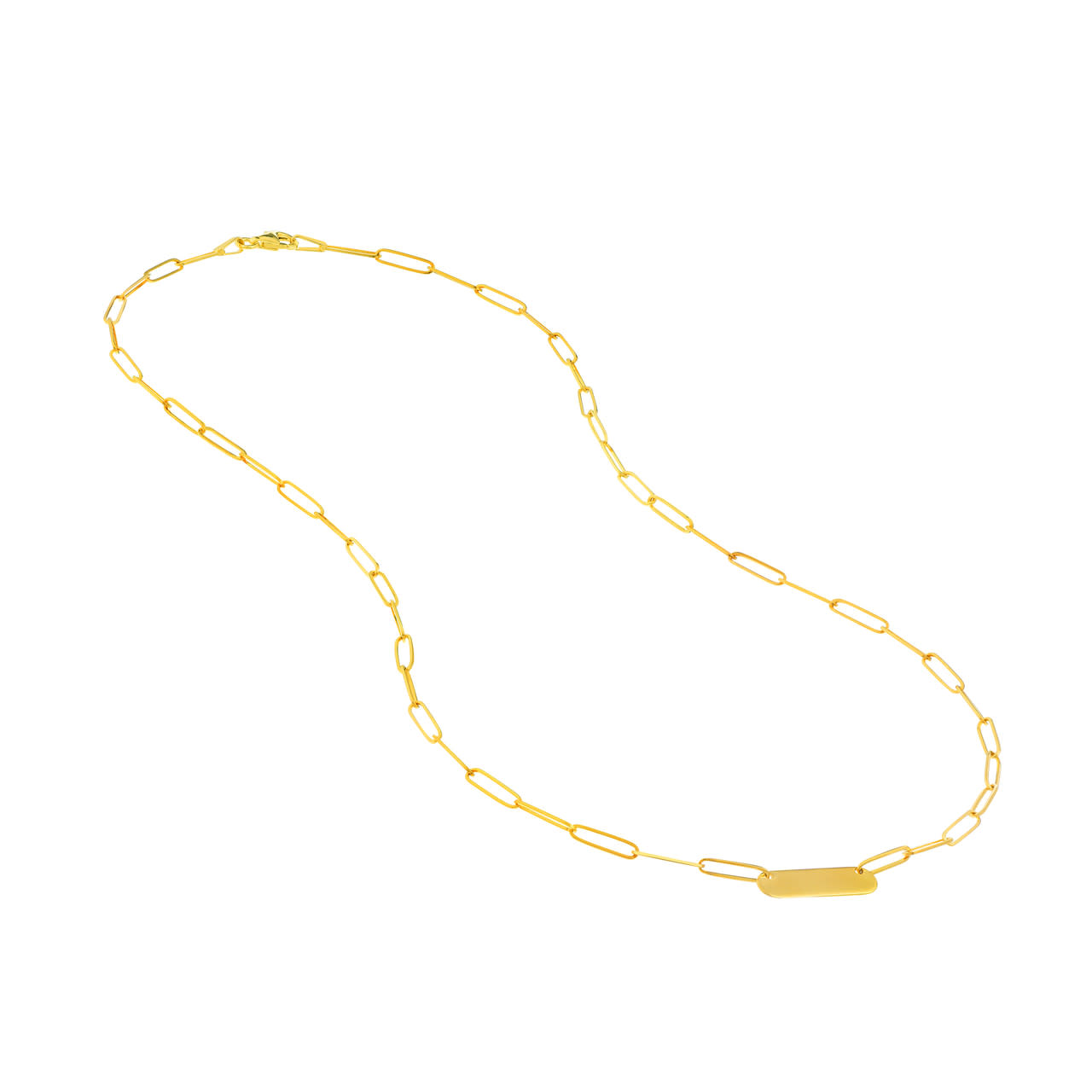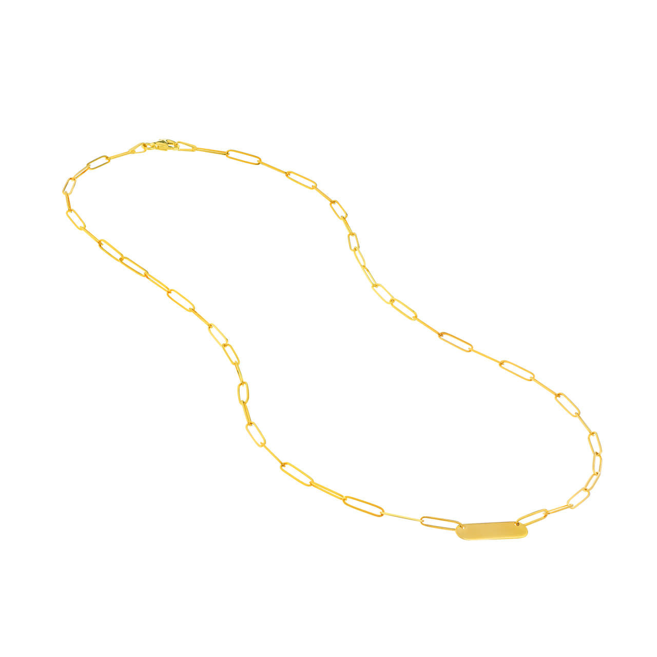 14K Yellow Gold Paper Clip Bar Necklace
