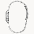 The surprise of a mother-of-pearl dial lends this ladies' sport watch a extra feminine touch. This stainless steel 3-hand model with 26mm case also features luminous hands, a date indicator, fold over clasp with push-button, and 100 meter water resistance.