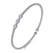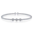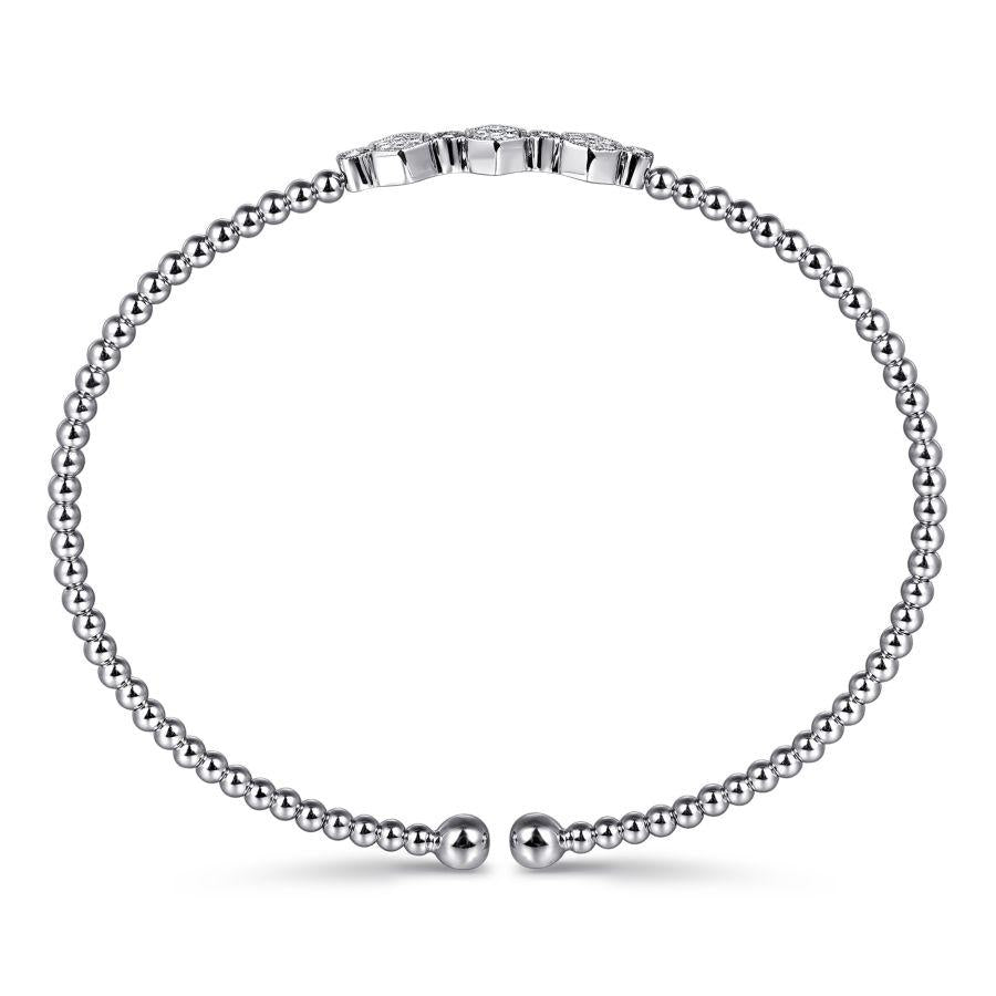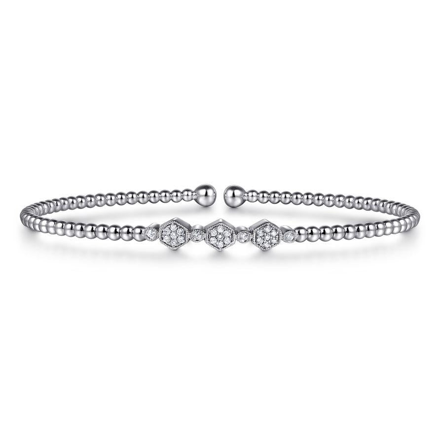 14K White Gold Bujukan Bead Cuff Bracelet with Cluster Diamond Hexagon Stations