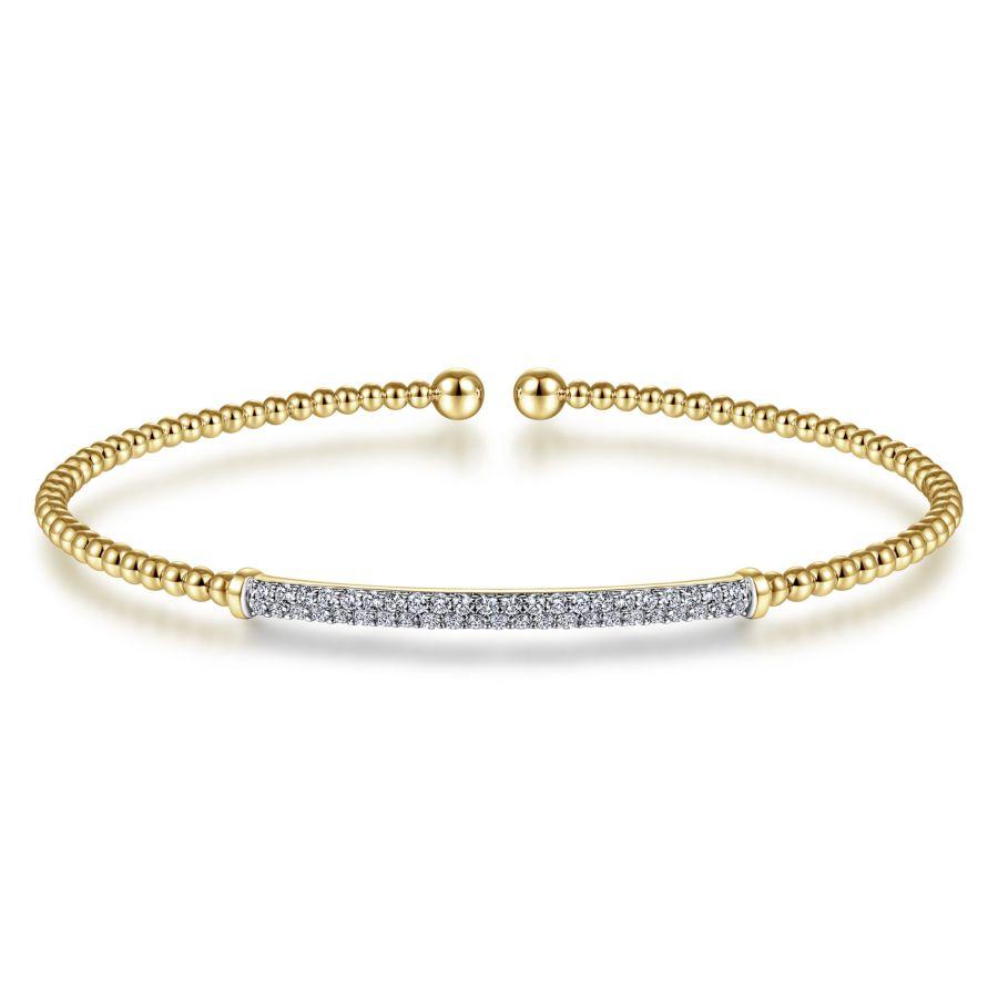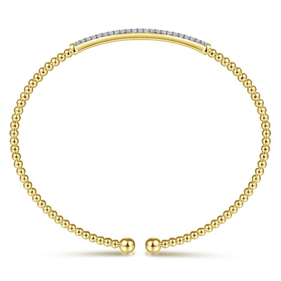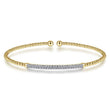 14K Yellow Gold Split Cuff Bracelet with Diamond Pave Bar