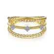 14K Yellow Gold Three Row Diamond Station Open Ring