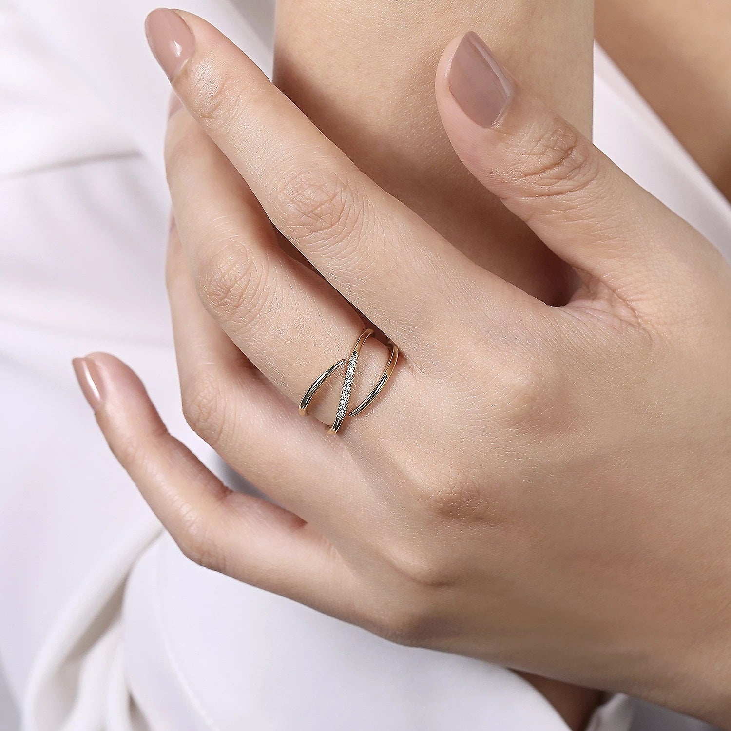 Swirling strands of glittering 0.05ct pave diamonds and polished 14K yellow gold wrap gracefully around the finger in this modern Kaslique ring. The split shank design creates a bold and eye-catching silhouette that's totally on-trend.