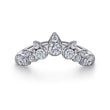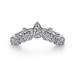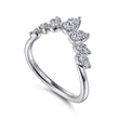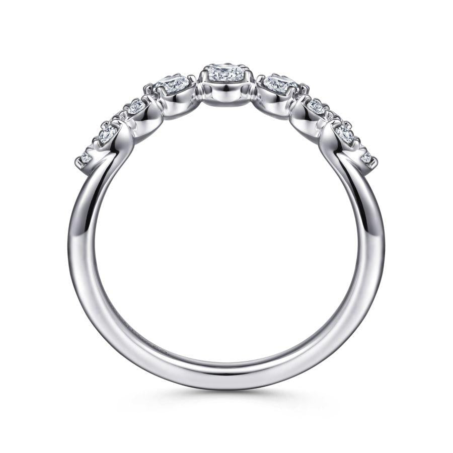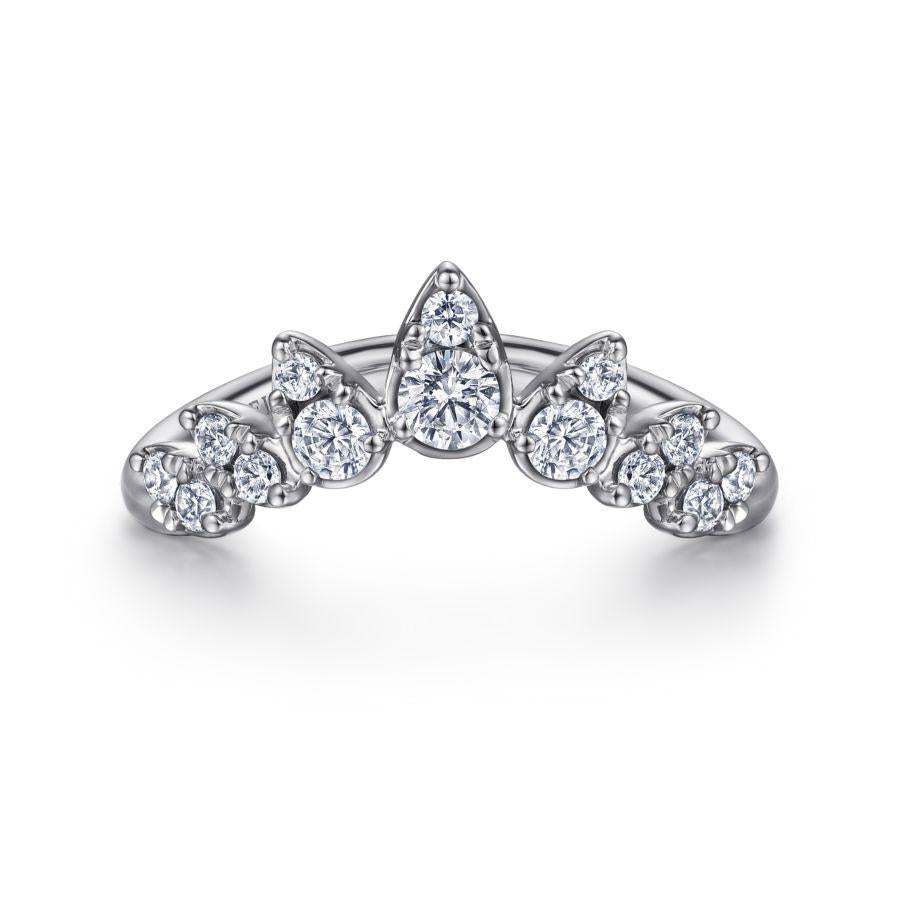 Pairs of round cut diamonds are set against a chic pear shaped backdrop along this 14K white gold fashion ring. The curved silhouette creates a regal burst of 0.41ct diamonds that arches up toward the tip of the finger. Rival the twinkling beauty of the night sky with this ring.