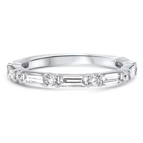 Stack this round and baguette diamond band with your engagement ring or your other favorites! Crafted from 14k white gold this band totals .50ctw in diamonds.