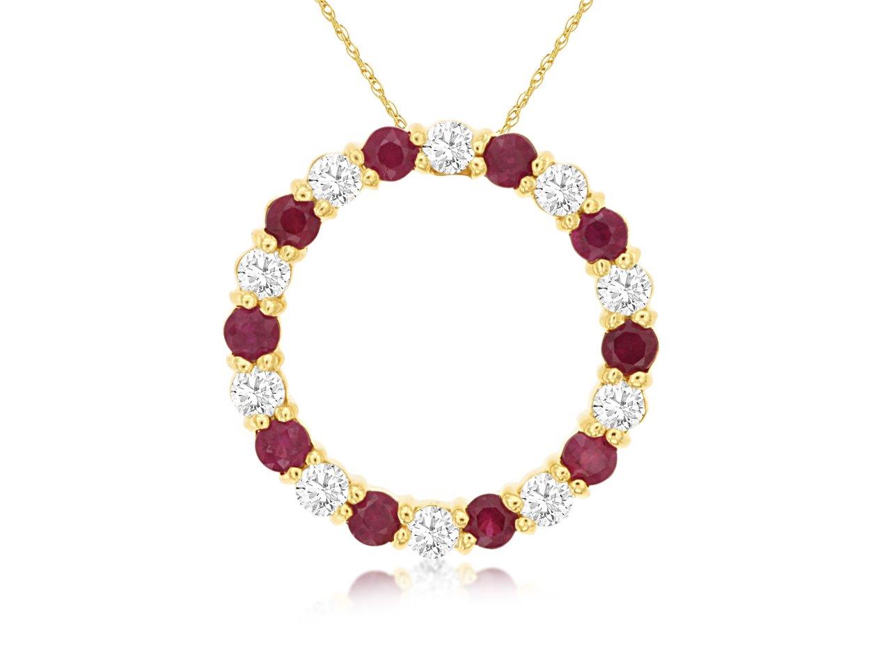 14K Yellow Gold Ruby and Diamond Circle Necklace