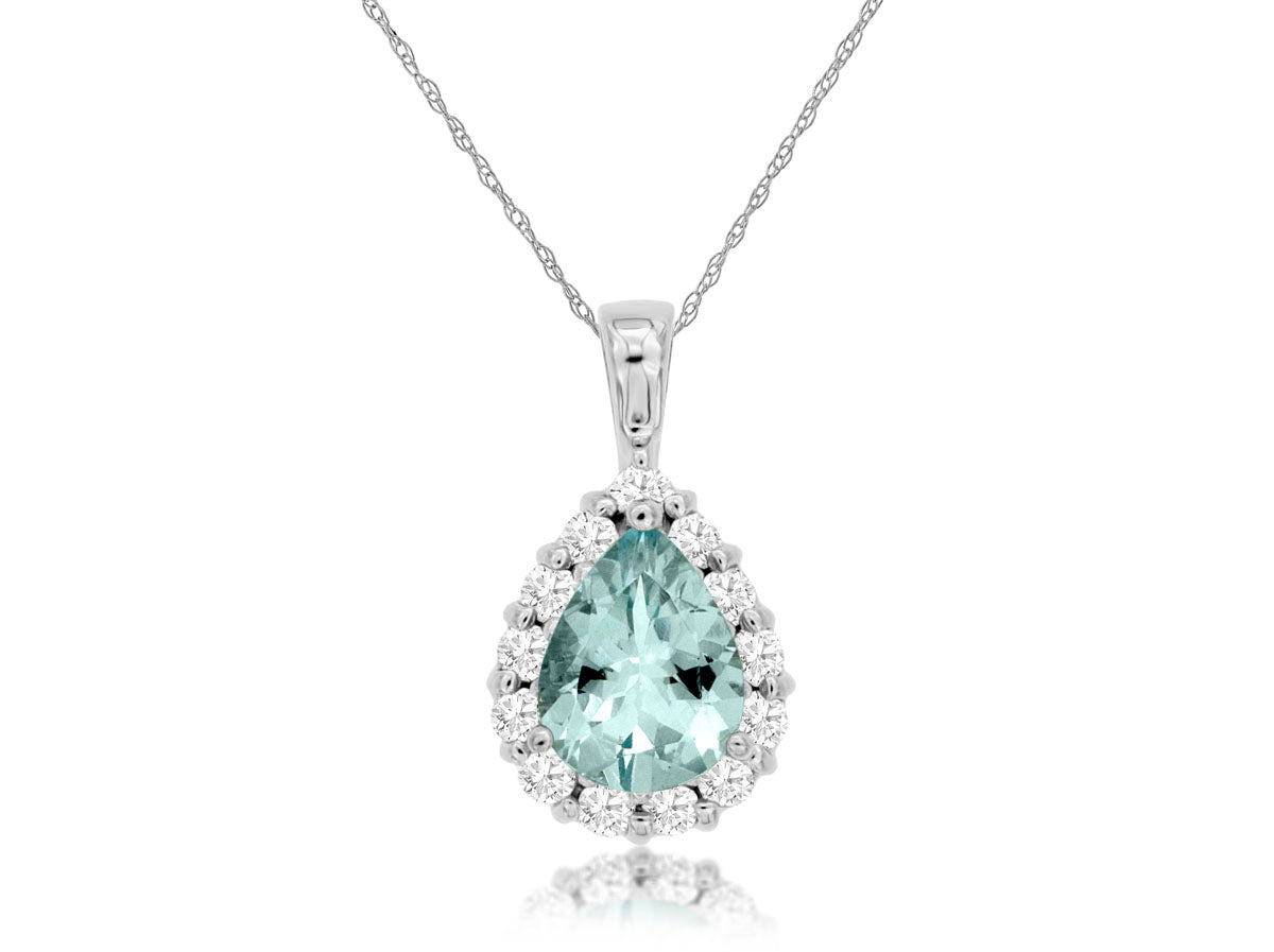 14KT WG .30CTW(P)AQUA/PAVE DIAMOND TEARDROP NECKLACE(P.95CT AQUA)