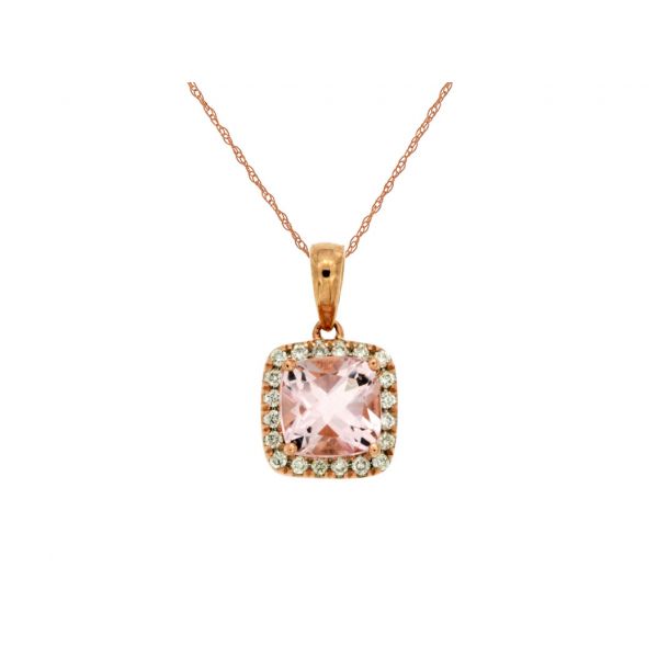 14kt. Rose Gold Cushion Morganite & Pave Diamond Necklace. (.11ctw)