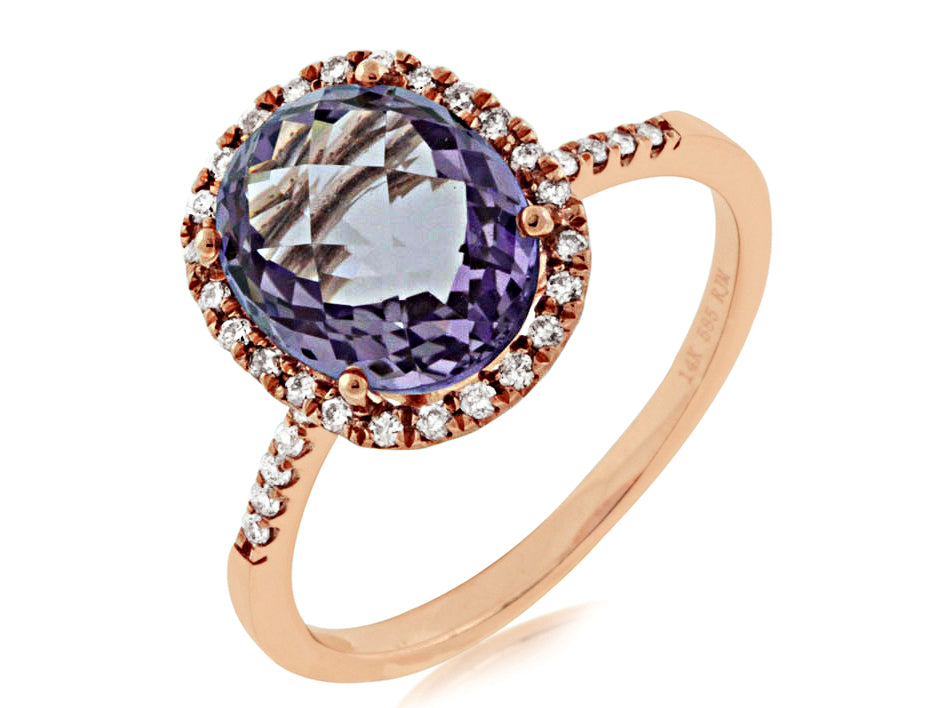 14KT PG .21CTW AMETHYST/PAVE DIAMOND RING(O3.00CT AME)