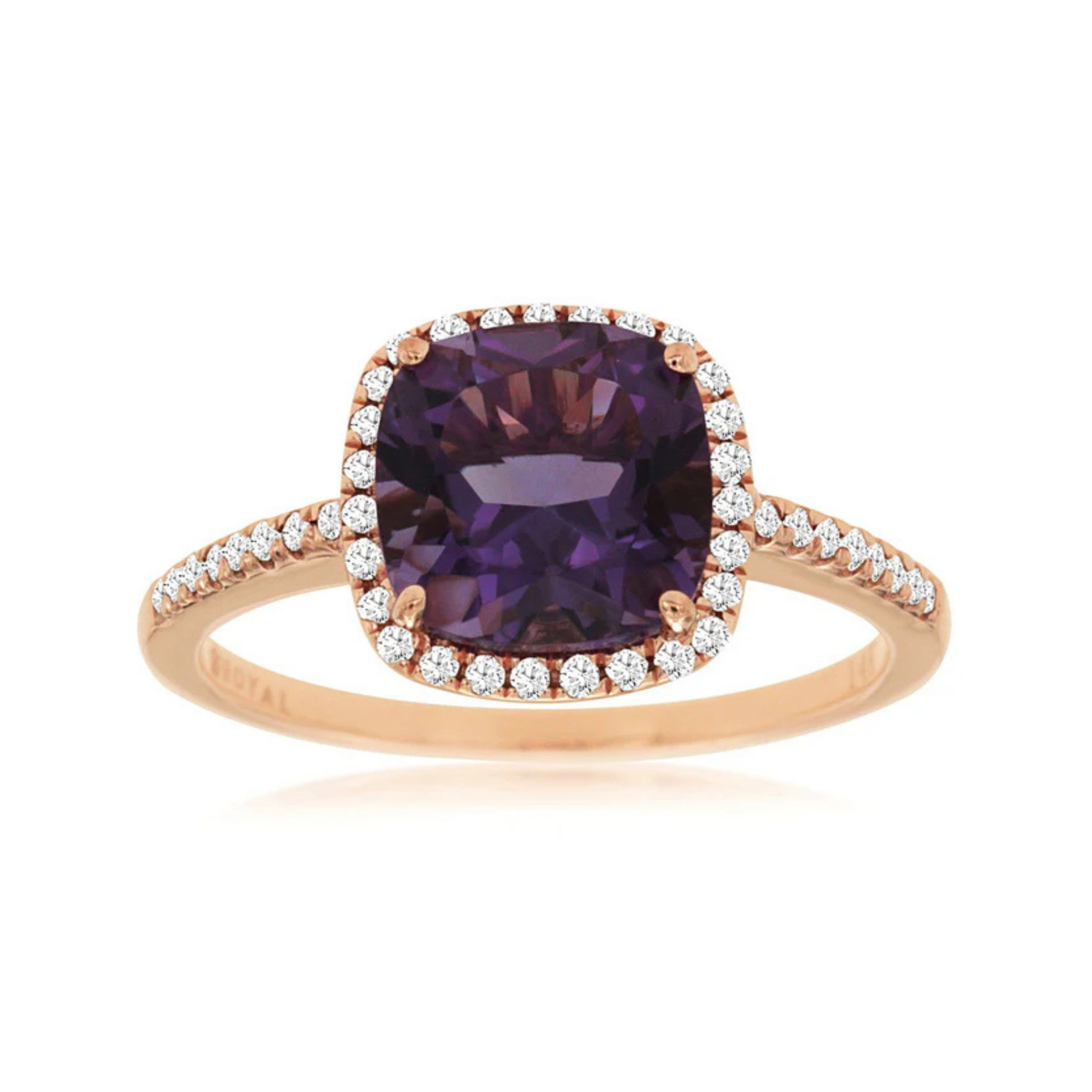 14KT PG .18CTW(RG)(C)AMETHYST/PAVE DIAMOND RING(C1.90CT AME)