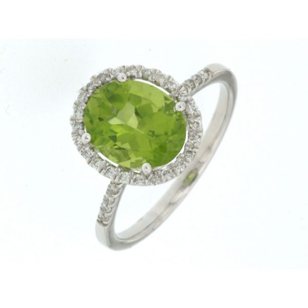 14KT WG .21CTW(O)PERIDOT/PAVE DIAMOND RING(O2.80CT PER)