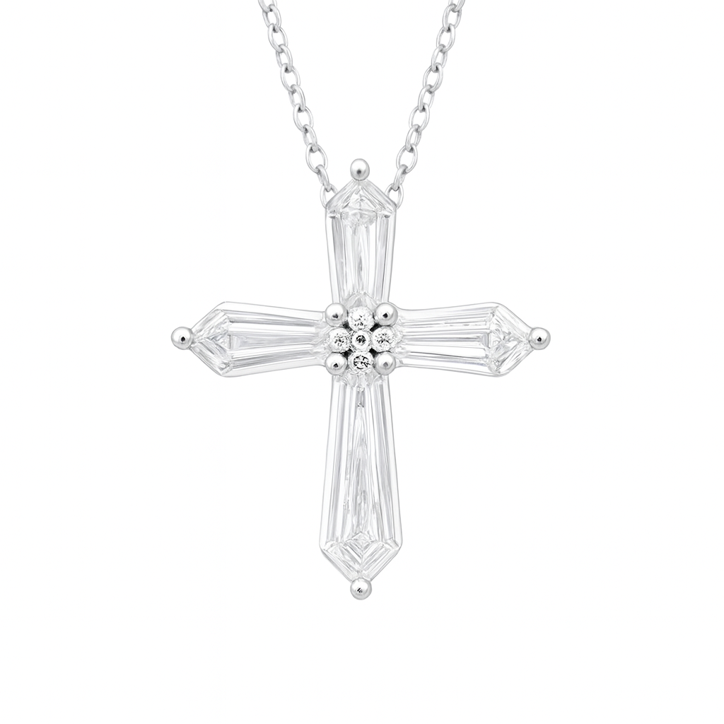 A refined blend of luxury metals, this petite diamond cross necklace features a platinum cross set with shimmering .30ctw diamonds, paired with a 14KT chain for a modern two-tone look. Perfect for layering or wearing solo, this meaningful piece offers everyday sparkle in a sleek, delicate silhouette.