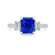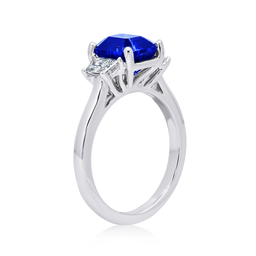 Platinum Radiant Sapphire Ring with Trapezoid Diamond Sides