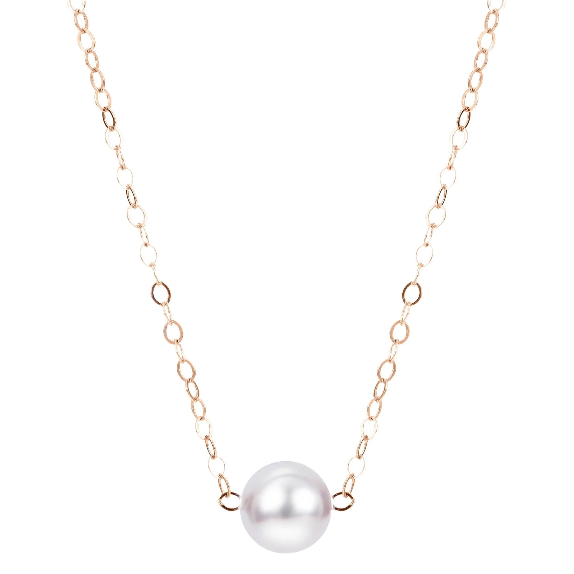 15" 14KT Pearl by Pearl Necklace with 1 Akoya Pearl