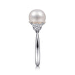 14K White Gold Cultured Pearl and Diamond Cluster Ring